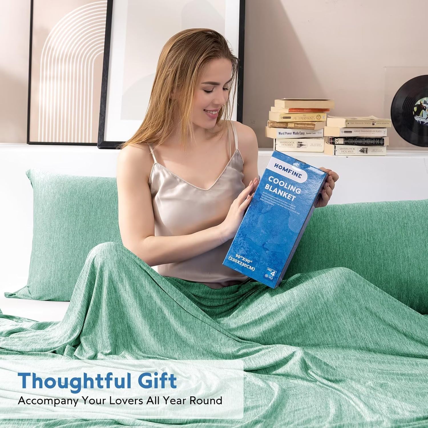 HOMFINE Cooling Blankets for Hot Sleepers - Summer Blanket Thin Lightweight Breathable Soft Double Side Enhanced Cooling for Bed Couch Sofa, Keep Cool for Night Sweats (Green, 50 x 70 inches)