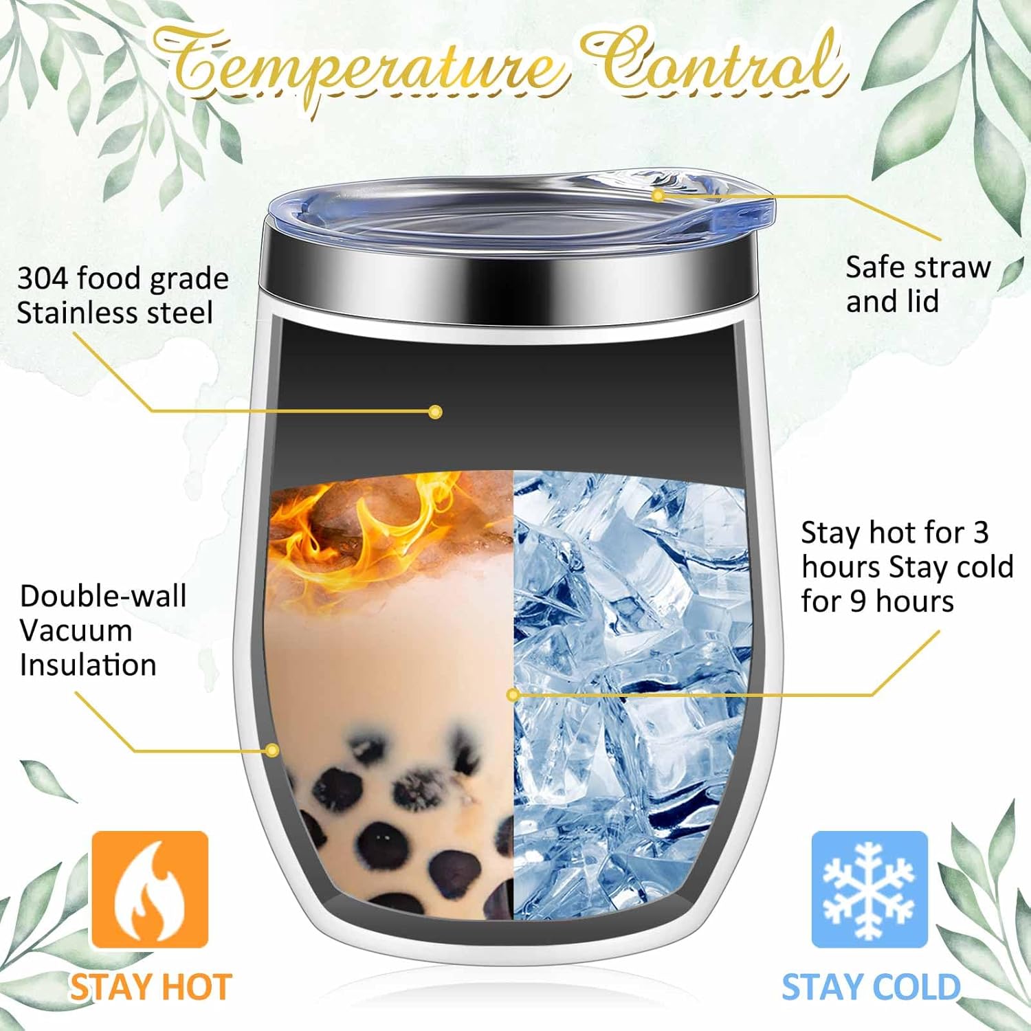 Adorable Aesthetic with Functional Size: our wine tumblers with splash proof lids are not just pretty to look; These stainless steel wine tumblers have a convenient capacity of about 12 oz, ideal for serving a variety of beverages; The straws and cleaning brushes complement the tumblers' size at about 5.91 inches long