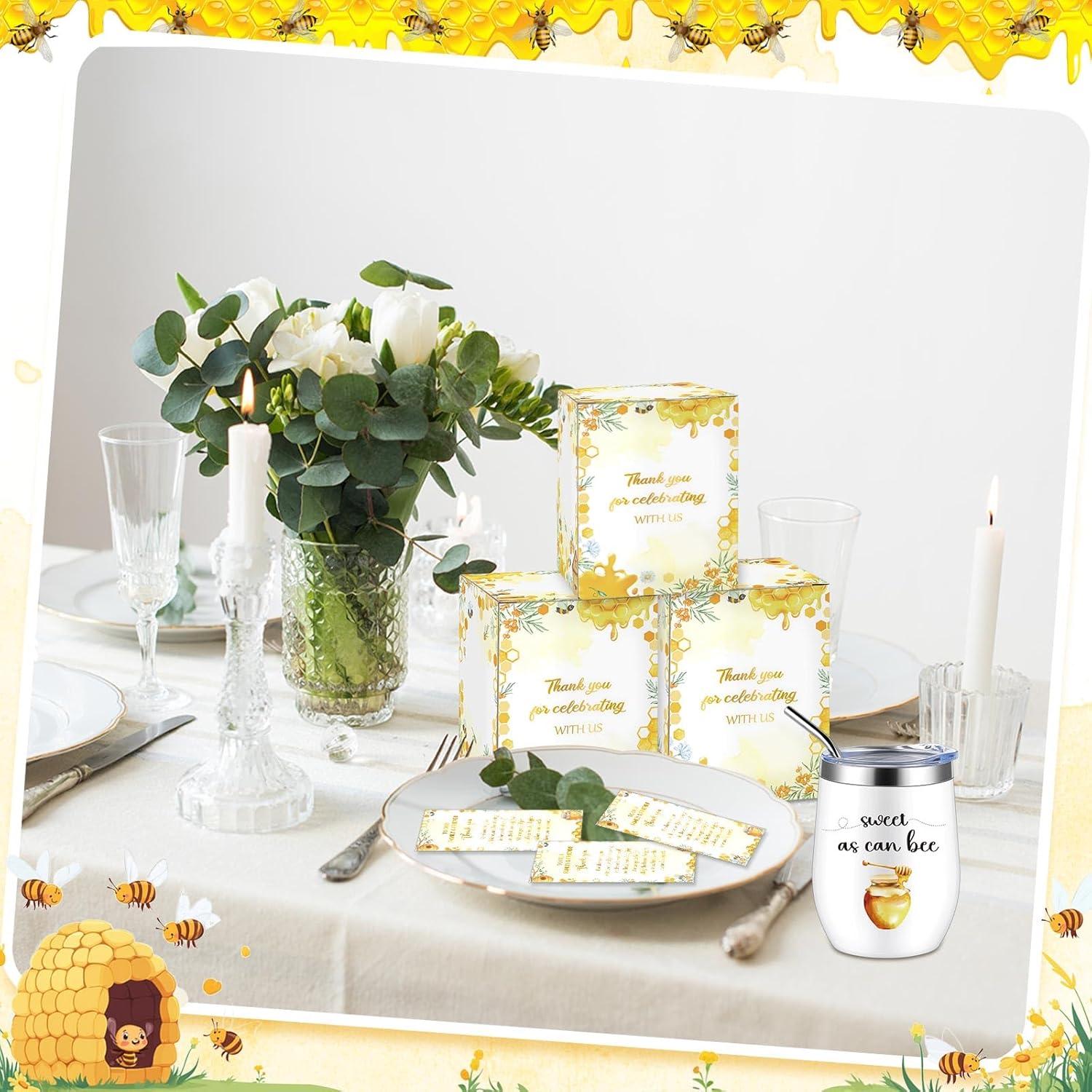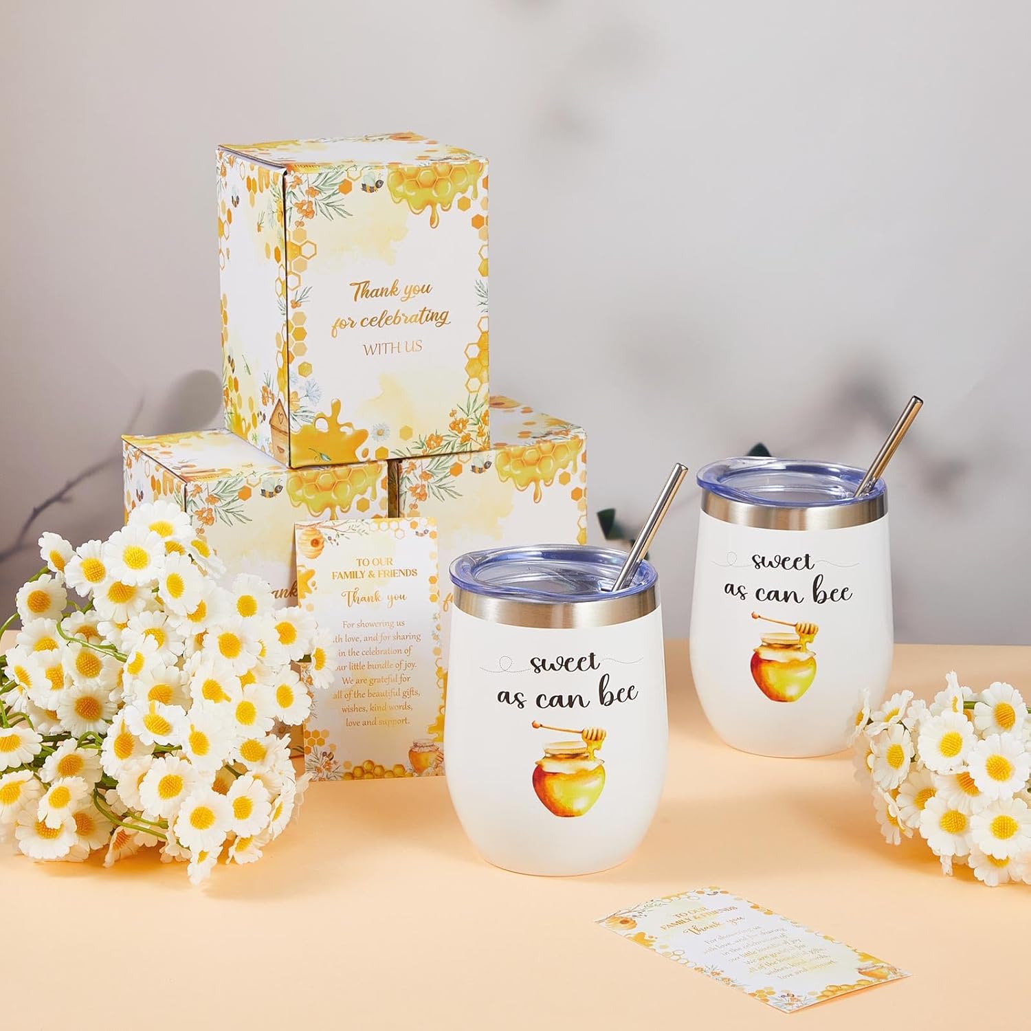 Hoolerry 6 Set Baby Shower Game Prizes for Guests Winners 12 oz Insulated Stainless Steel Tumbler Cup with Lids, Straws, Cleaning Brush, Cards & Boxes Return Gifts(Yellow,Bee Honey)