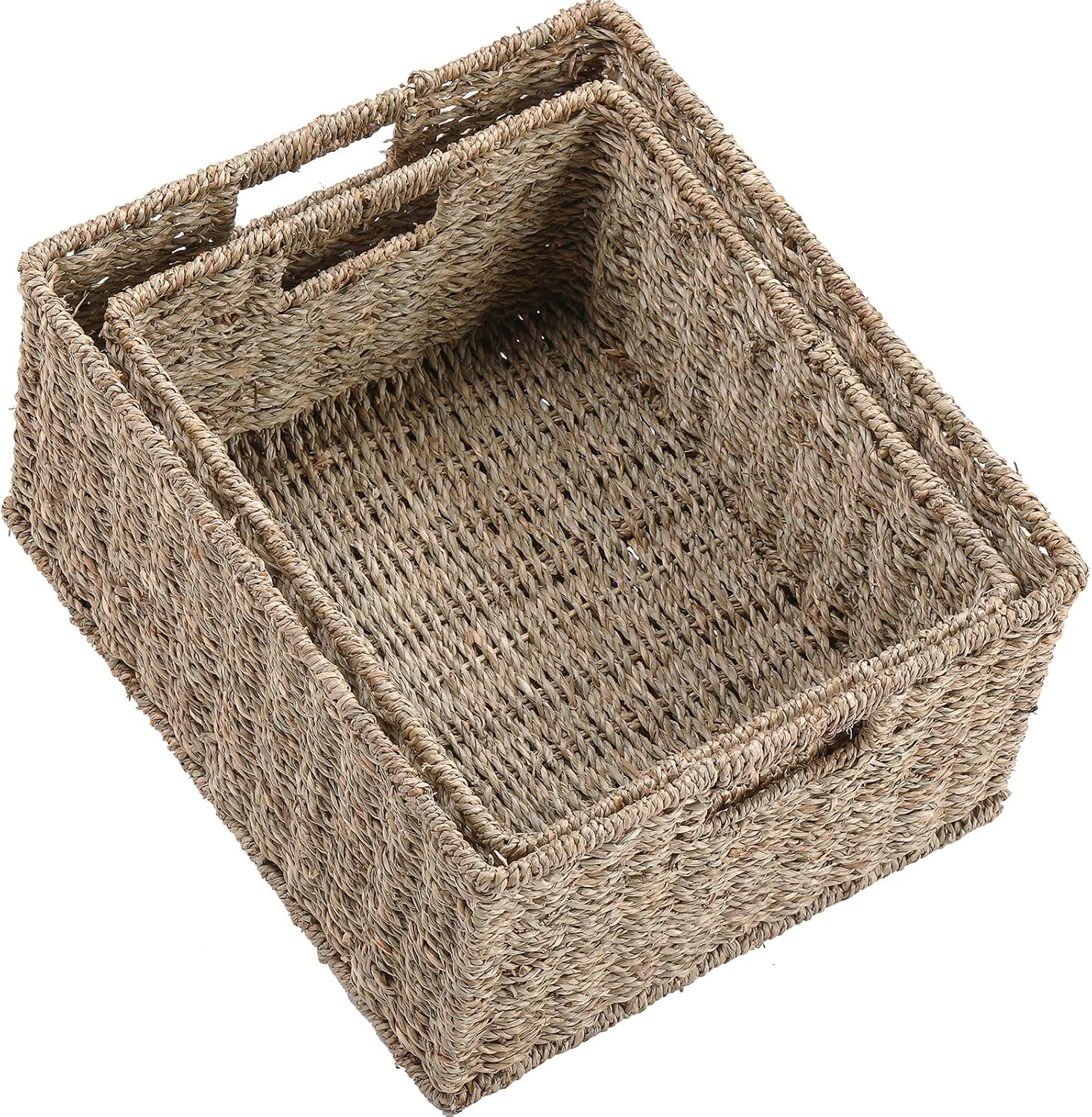 Natural and Sustainable: these storage baskets for shelves are made of naturally grown seagrass in a woven pattern, the material is natural and friendly to the environment.