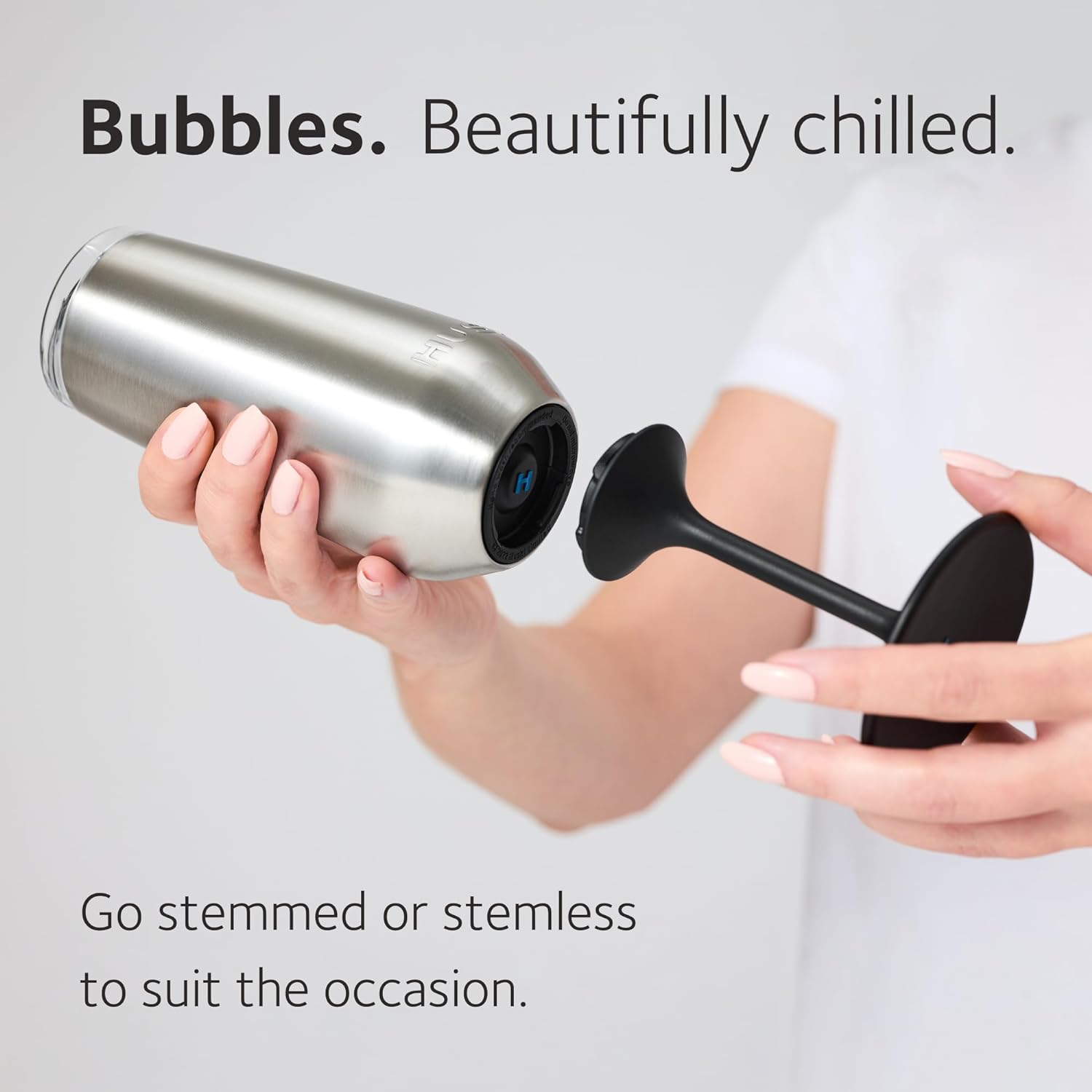 Huski Champagne Flute | NEW | Award-winning Design with Detachable Stem | Premium Stainless Steel Champagne Glass with Lid | Triple Insulated Tumbler | 8oz Capacity | Great Gift (Brushed Stainless)