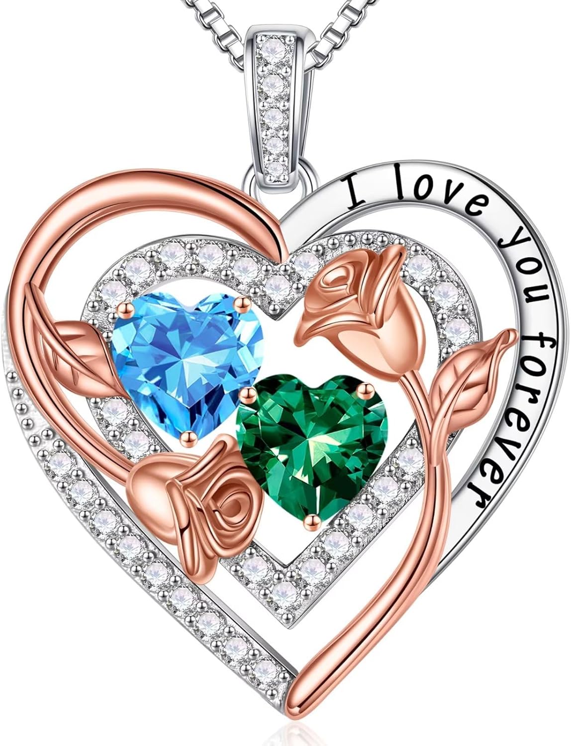 UNIQUE GIFTS: The elaborate double birthstone necklace, one representing your birth month and one representing hers, represents the two of you forever tightly held together. Unique necklace send to the best women in your life and let her know how much she means to you. This birthstone necklace, a perfect gift for your love on Christmas, Anniversary and Birthday.