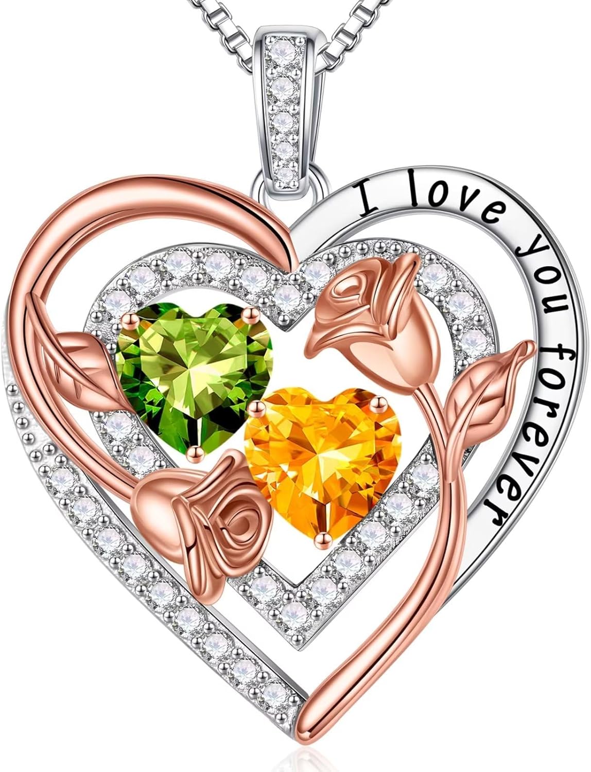 UNIQUE GIFTS: The elaborate double birthstone necklace, one representing your birth month and one representing hers, represents the two of you forever tightly held together. Unique necklace send to the best women in your life and let her know how much she means to you. This birthstone necklace, a perfect gift for your love on Christmas, Anniversary and Birthday.