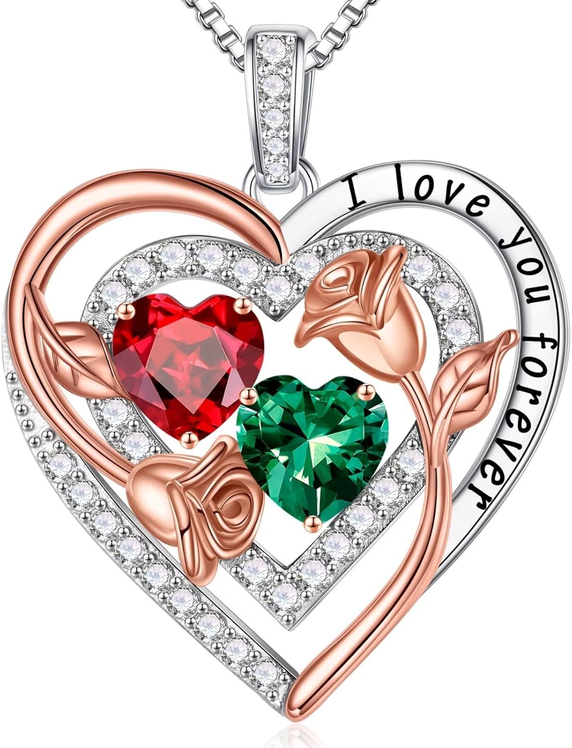 UNIQUE GIFTS: The elaborate double birthstone necklace, one representing your birth month and one representing hers, represents the two of you forever tightly held together. Unique necklace send to the best women in your life and let her know how much she means to you. This birthstone necklace, a perfect gift for your love on Christmas, Anniversary and Birthday.