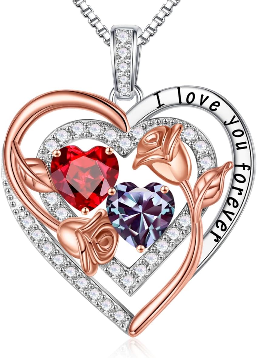UNIQUE GIFTS: The elaborate double birthstone necklace, one representing your birth month and one representing hers, represents the two of you forever tightly held together. Unique necklace send to the best women in your life and let her know how much she means to you. This birthstone necklace, a perfect gift for your love on Christmas, Anniversary and Birthday.