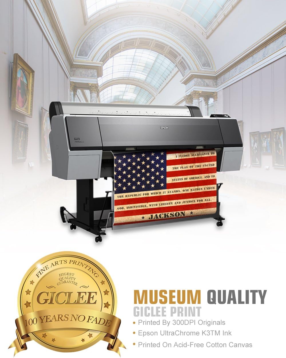 IPIC - American Flag, Personalized Canvas print with Family Name and Oath, Custom Canvas Wall Art for Independent Day, Thanksgiving and Christmas. 24x16