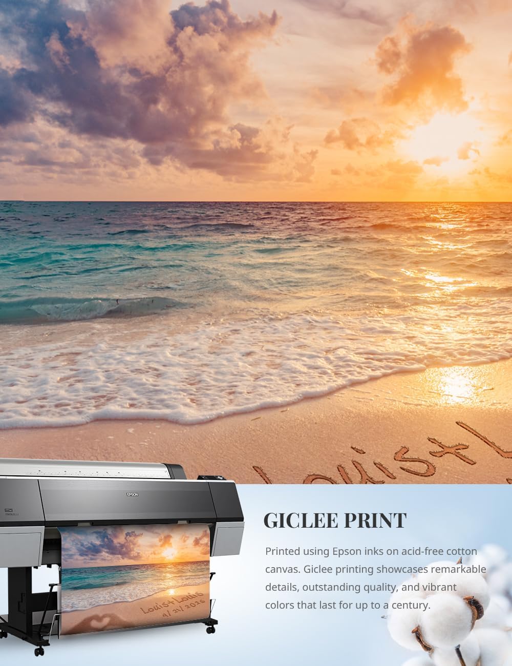 Giclee Print Technology: Printed using Epson inks on acid-free cotton canvas, this technique ensures incredible detail, vibrant colors, and exceptional quality, with colors that can last up to 100 years