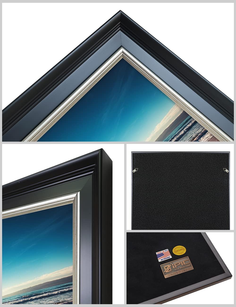 This Solid Wood Frame is Lustrous Black and Has A Satin Finish that is Smooth to the Touch. A Speckled Silver Slip and Beveled Detailing Give Just the Right Depth to Beautifully Display Your Art. Picture Size: W 30" x H 20", Total Framed Size: W 33.25" x H 23.25". Ready for hanging.