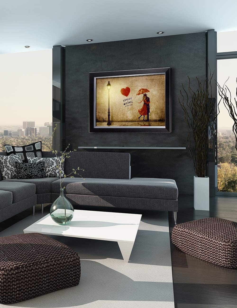 IPIC - Our First Kiss Personalized Framed Artwork for Romantic Anniversary and Wedding gifts; Picture size: 30x20, Framed Size: 33x23