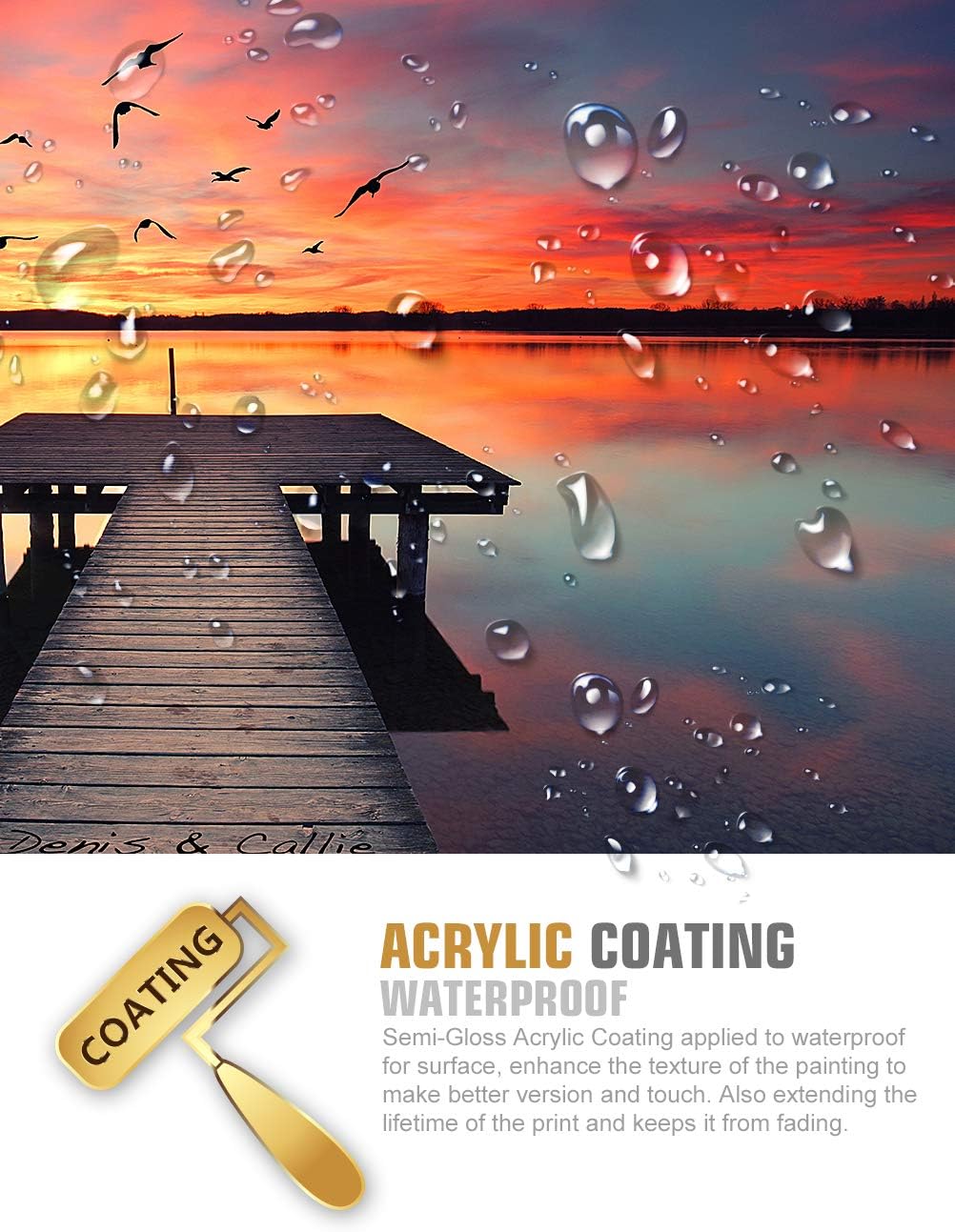 Semi-Gloss Acrylic Coating applied to enhance appearance, and to protect the print from dirt and dust, thereby extending the lifetime of the print and keeps it from fading.