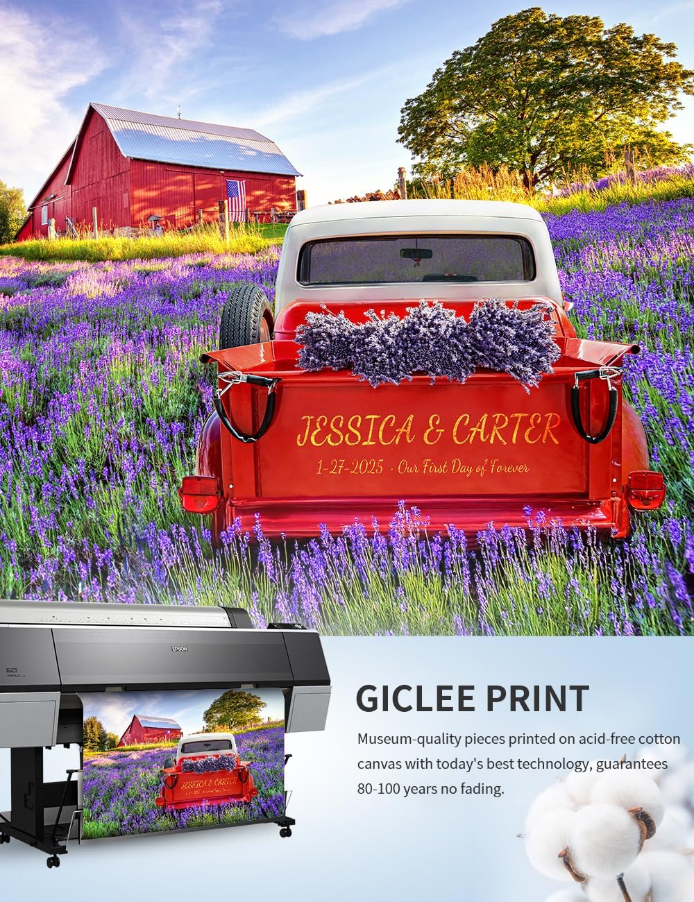 Giclee Print Technology: Printed using Epson inks on acid-free cotton canvas, this technique ensures incredible detail, vibrant colors, and exceptional quality, with colors that can last up to 100 years