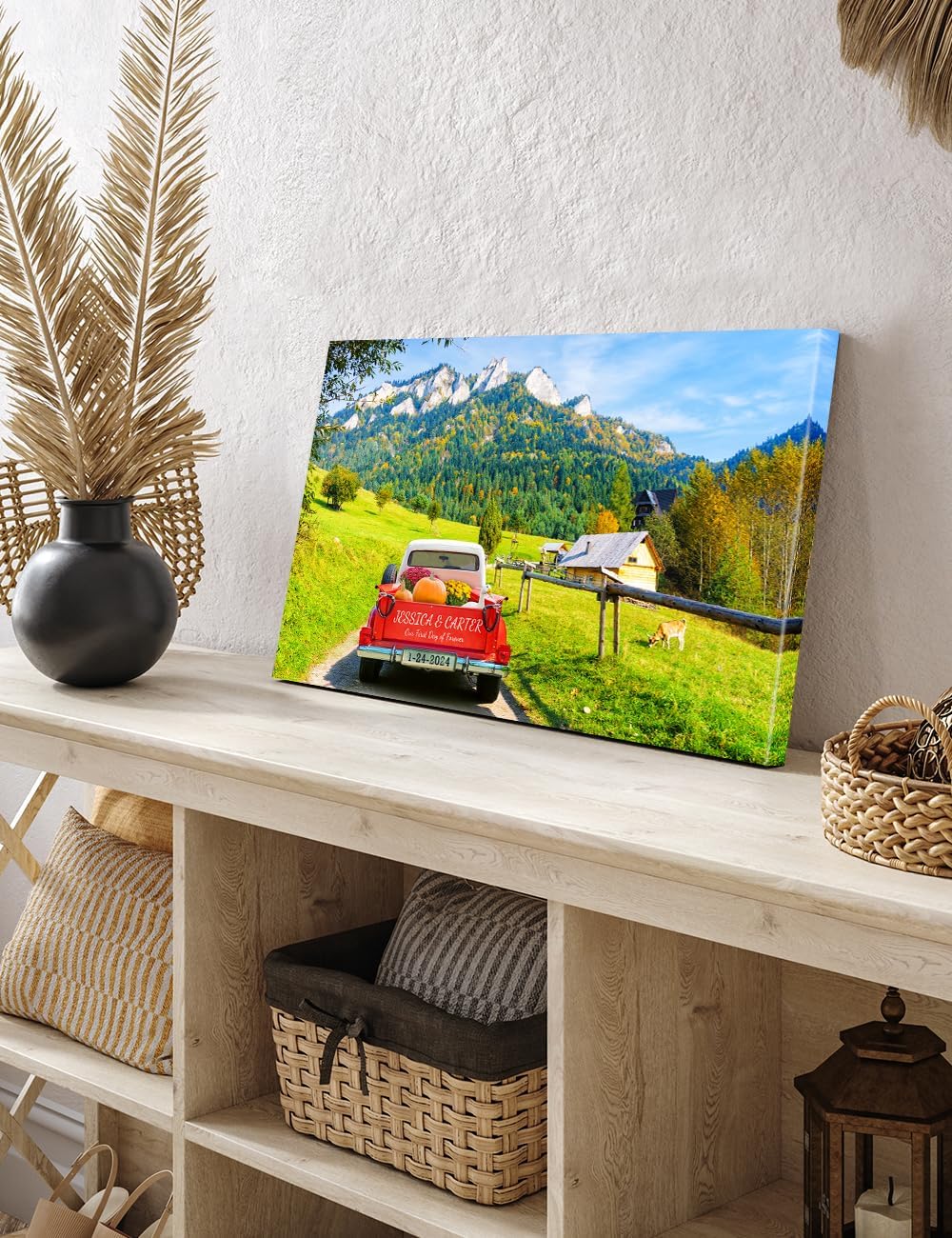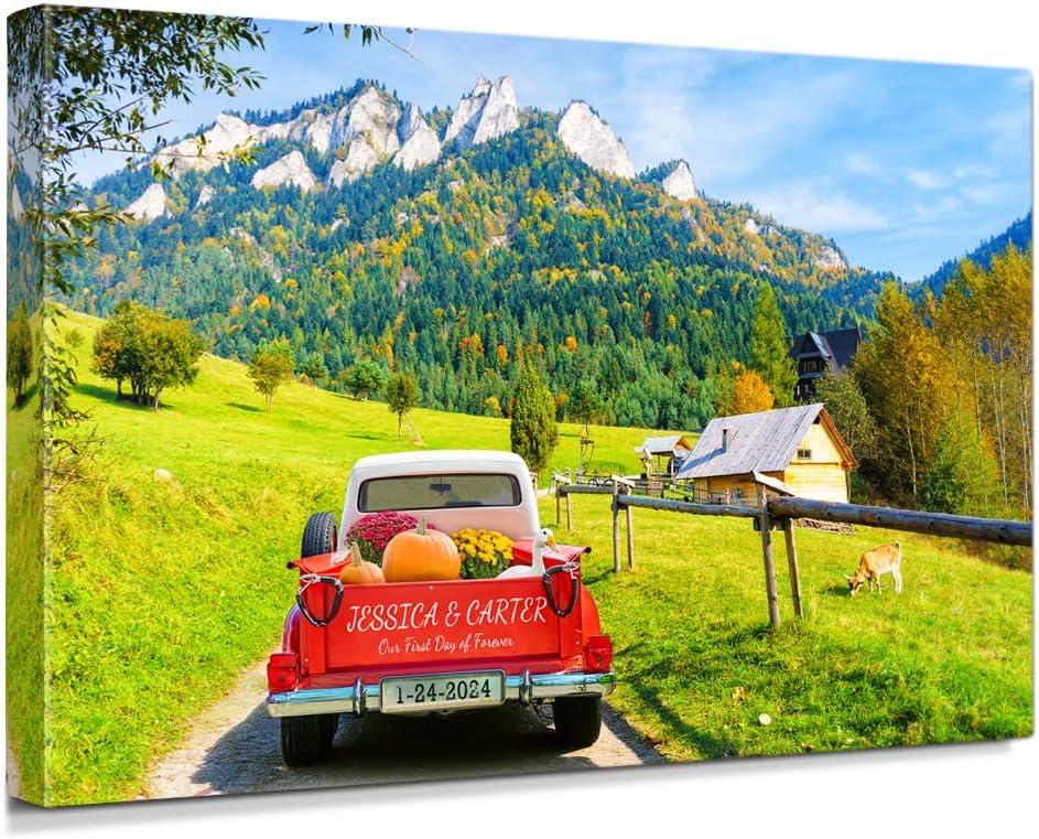Timeless Love Through the Seasons, Summer: This artwork captures the charm of a lush green field, a vintage red truck, and vibrant pumpkins, blending the golden warmth of summer into a timeless scene of joy and affection. Perfect for adorning bedrooms, living rooms, or cozy corners, it fills your space with love and cherished memories. Let this piece be the voice of your heart, celebrating your love in every glance.