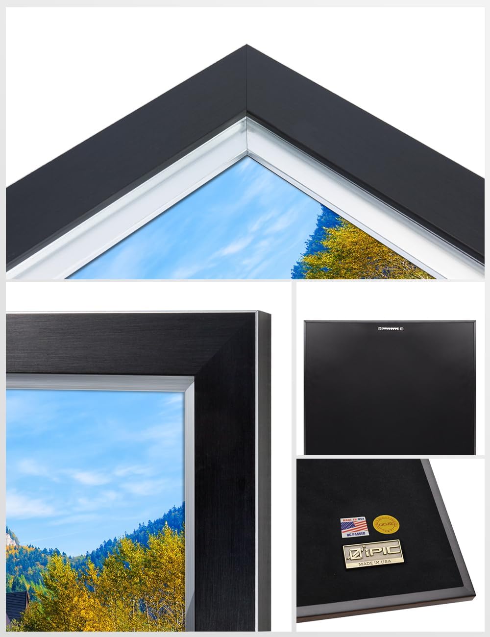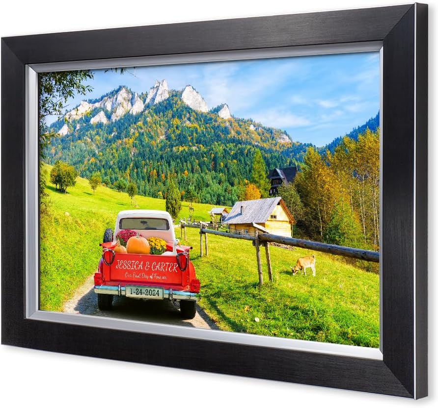 Modern black frame: Sleek black flat frame with elegant silver accents, adding a contemporary touch to any home or office decor. Picture size 18x12", framed size 21x15". Pre-assembled, ready to hang