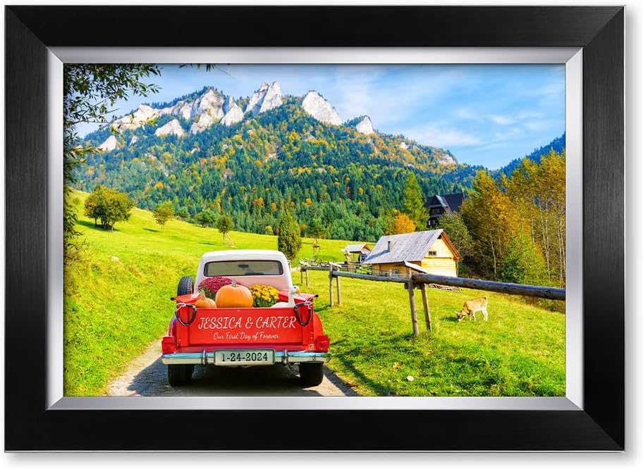 Timeless Love Through the Seasons, Summer: This artwork captures the charm of a lush green field, a vintage red truck, and vibrant pumpkins, blending the golden warmth of summer into a timeless scene of joy and affection. Perfect for adorning bedrooms, living rooms, or cozy corners, it fills your space with love and cherished memories. Let this piece be the voice of your heart, celebrating your love in every glance.