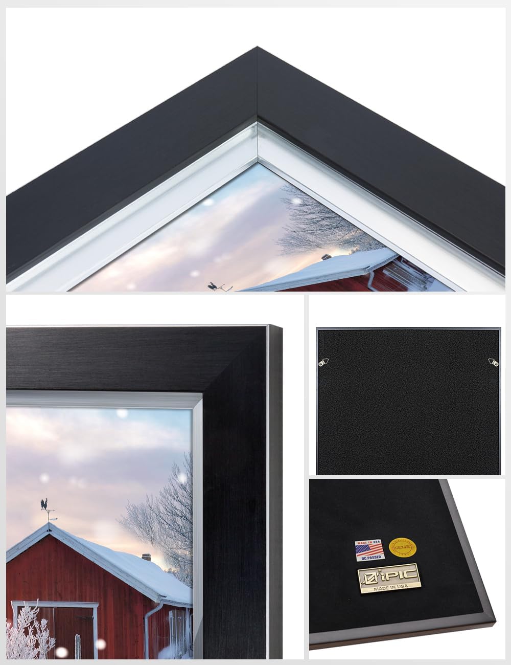 Modern black frame: Sleek black flat frame with elegant silver accents, adding a contemporary touch to any home or office decor. Picture size 30x20", framed size 33x23". Pre-assembled, ready to hang