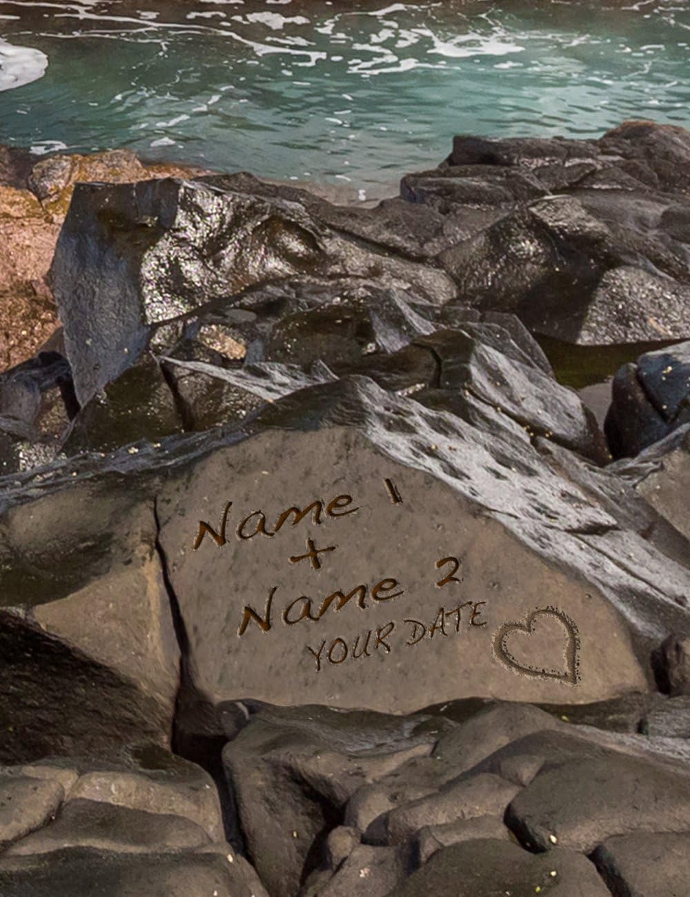 IPIC - Waves crashing at Queen's Bath, Kauai, Hawaii. Personalized Artwork with Names and Date on, Customized Gift for Anniversary,Wedding,Birthday and Holidays. 30x20