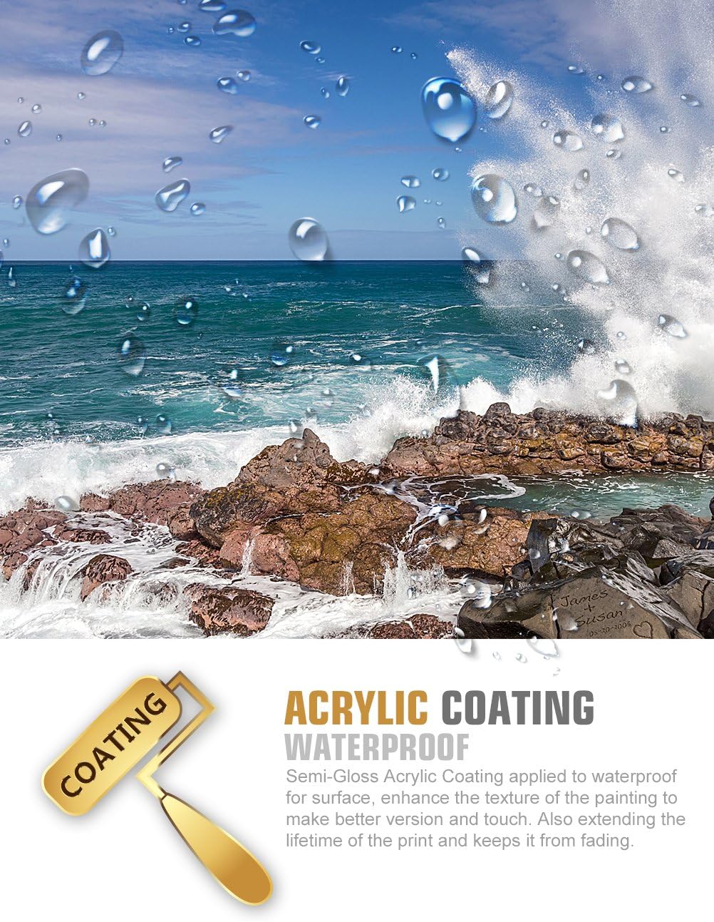 Semi-Gloss Acrylic Coating applied to enhance appearance, and to protect the print from dirt and dust, thereby extending the lifetime of the print and keeps it from fading.