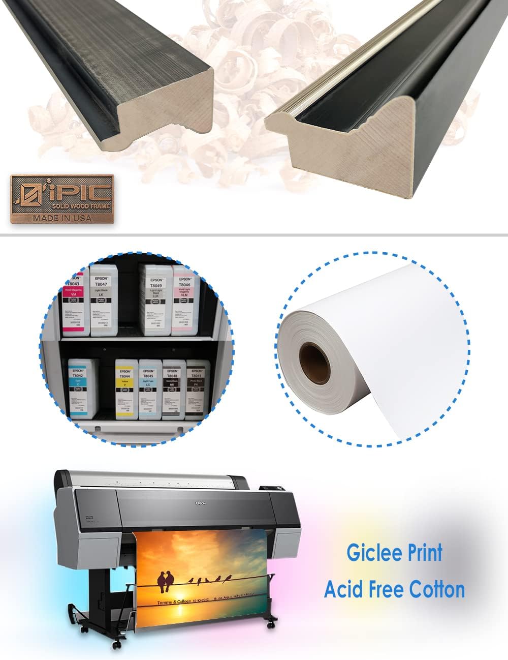 Giclee Print Technology: Using Epson inks onto acid free cotton canvas, giclee printing guarantees incredible detail, phenomenal quality, and vibrant colors. Saturated colors for up to 100 years.