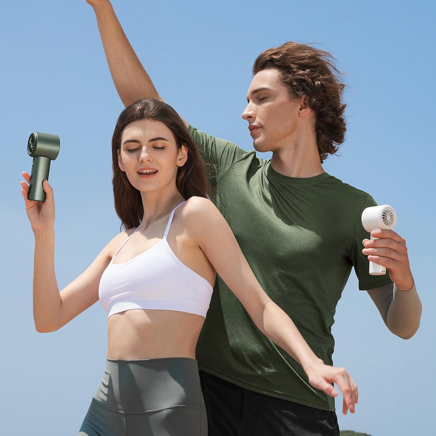 Brushless Motor - Super Power: The combination of a three-phase brushless motor and a 3600mAh battery significantly improves the wind speed, power, and endurance. The maximum wind speed can reach 9m/s. The highest rotation speed of the handheld fan is three times that of a regular personal fan, reaching up to 15000 RPM. It can cool for 2-12 hours on a single charge