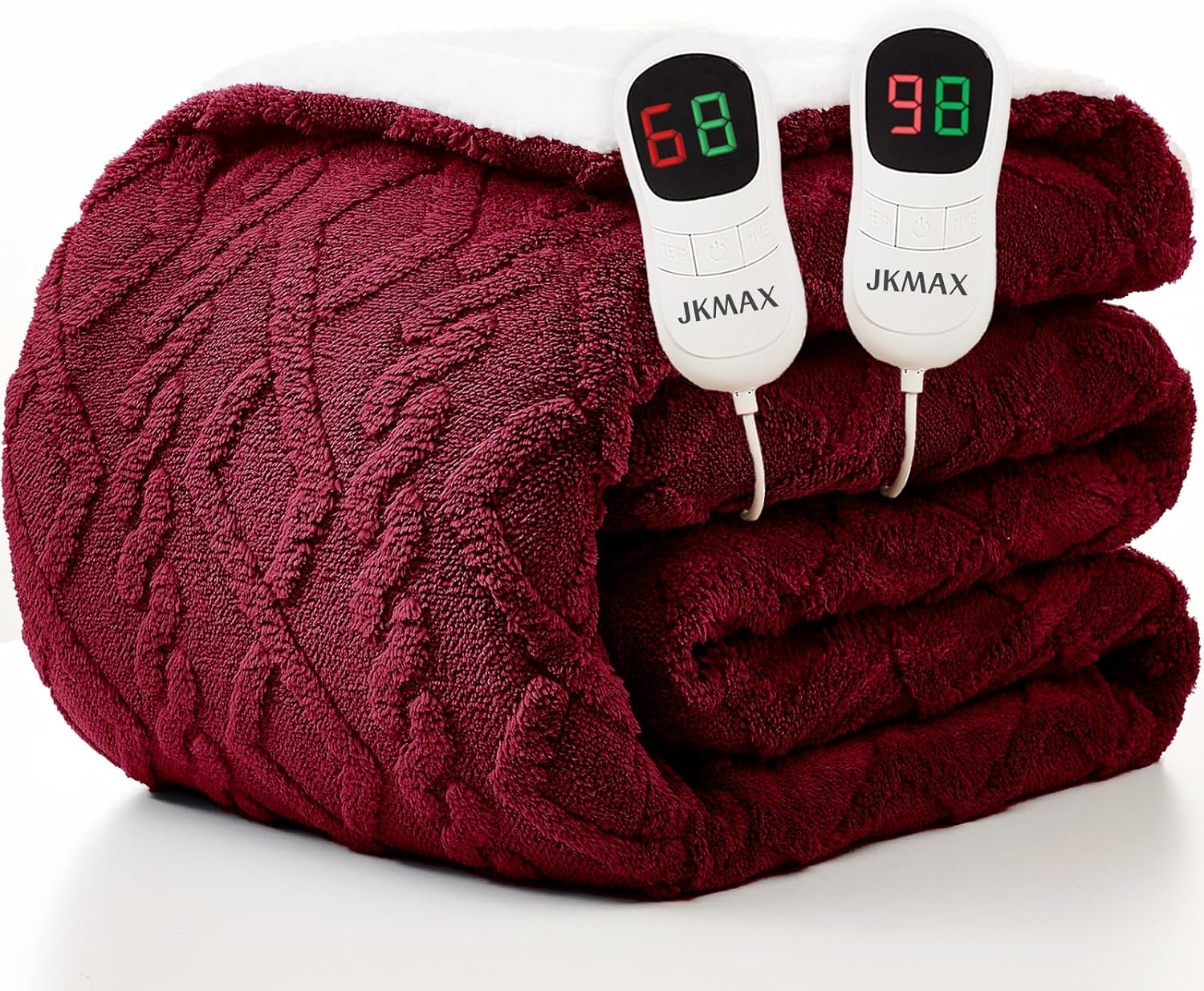 JKMAX Heated Electric Blanket King Size-100"x90" Heating Blanket with 10 Heating Levels & 5 Time Settings Over-Heat Protection,Winter Warmer for Adults with ETL Certification(Red)