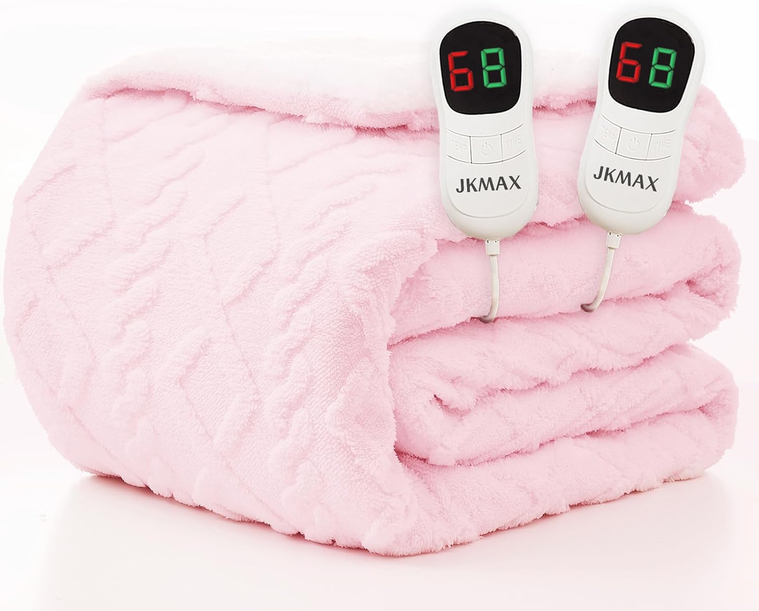 JKMAX Heated Electric Blanket Queen Size-84"x90" Heating Blanket with 10 Heating Levels & 5 Time Settings Over-Heat Protection,Winter Warmer for Adults with ETL Certification(Pink)