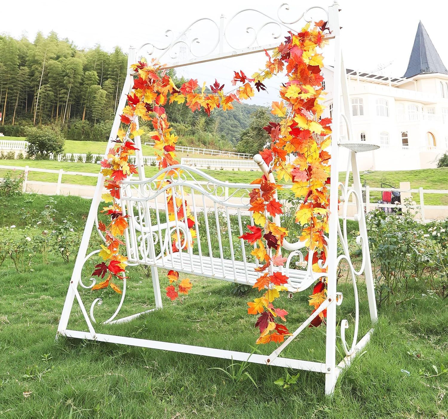 Premium Materials: Our fall garland is crafted from silk clothes.Equipped with 2 hook accessories for easy hanging, its flexible plastic rod allows creative shaping for fall decor. Perfect for fall outside decor, it integrates seamlessly into fall garland setups like maple leaf garland.