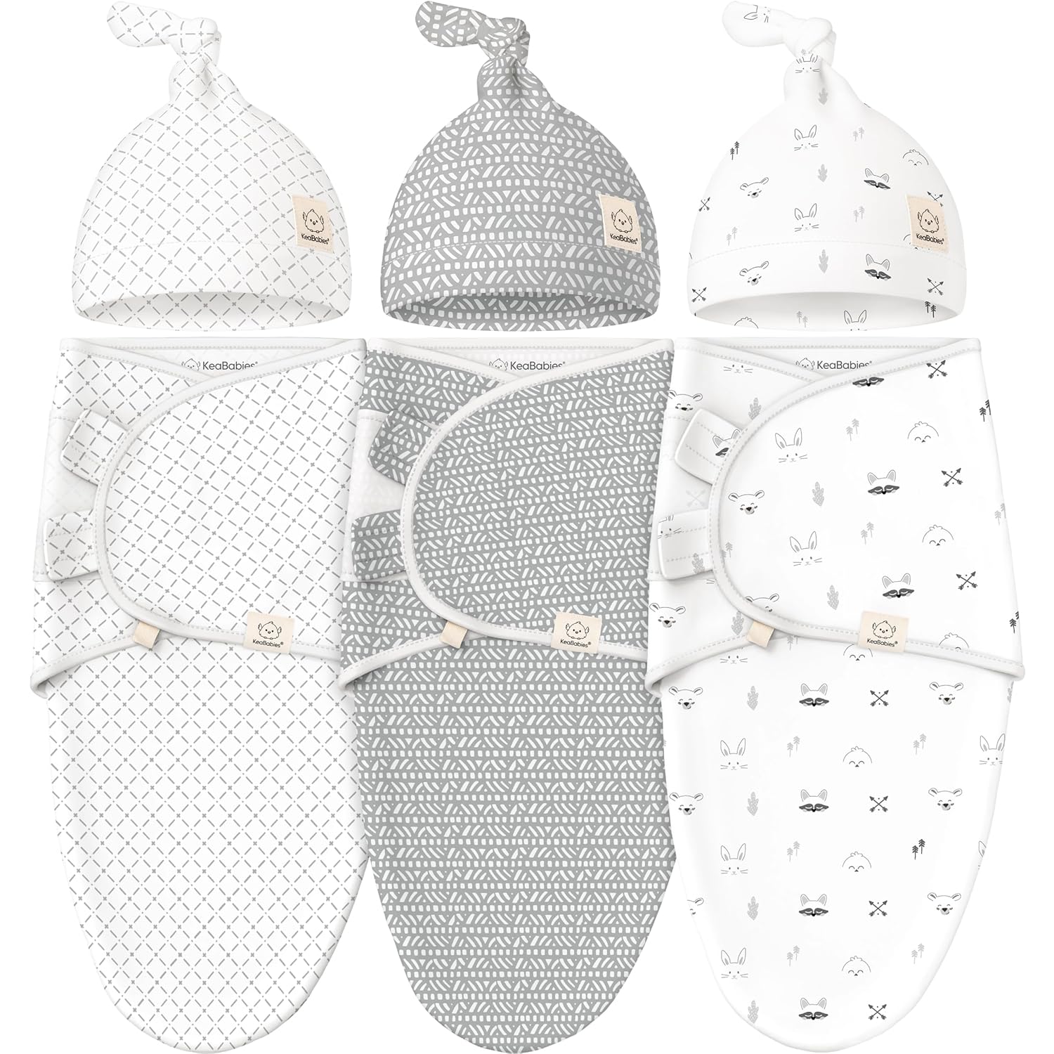 KeaBabies 3-Pack Swaddles for Newborns, Girls, Boys with Hats - Organic Soft Baby Sleep Sacks, Breathable Baby Swaddle 3-6 Months Beanies Set, Premie Infant Sleep Sack 0-3 Months (Nordic)