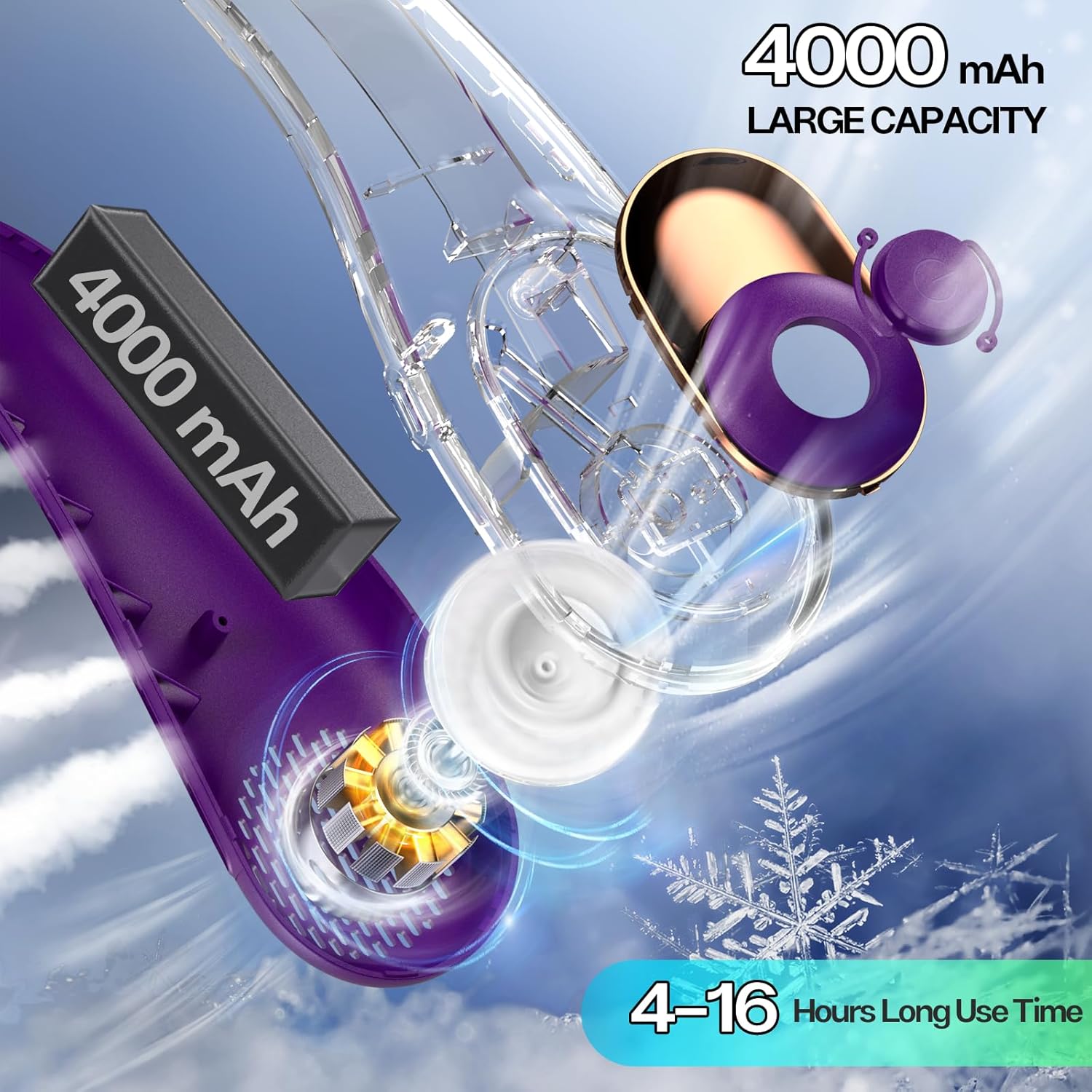 ❥【4000mAh HIGH CAPACITY BATTERY & 4-16 RUNNING HRS】 Built-in 4000mAh battery provides UP to16 hours of operating time. The portable fan need only 4 hours to be fully charged.