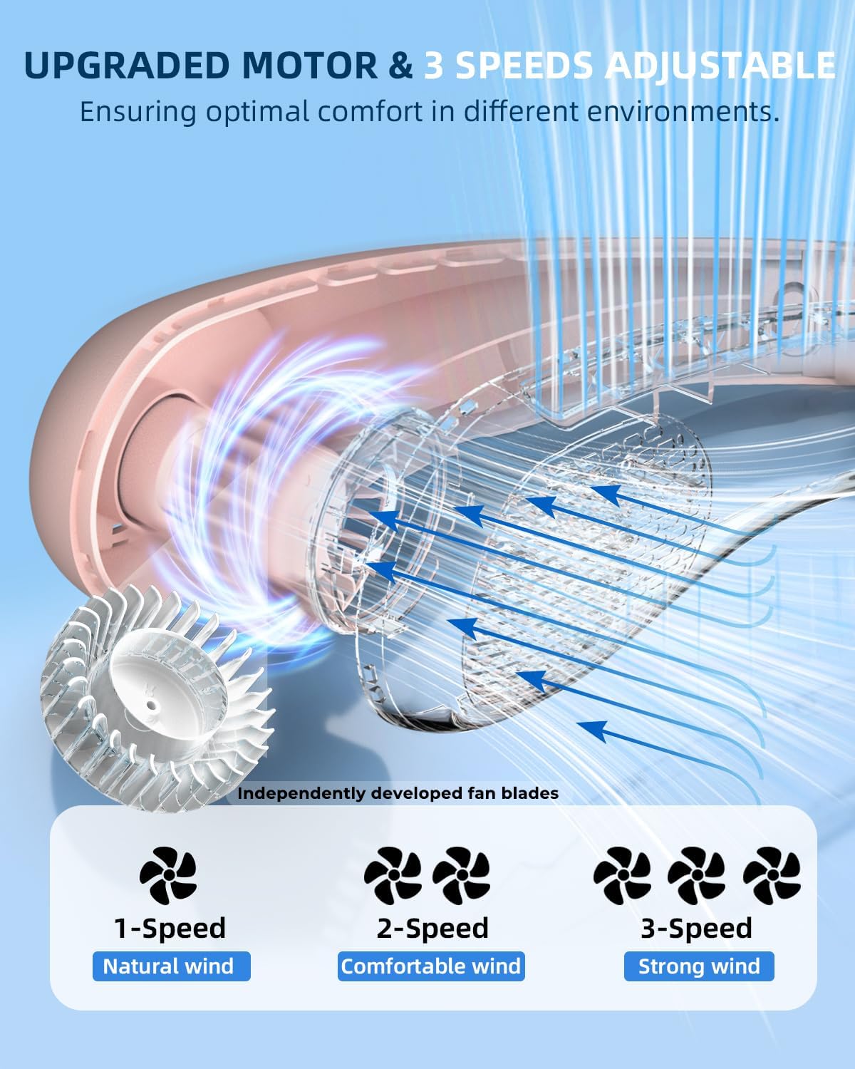 ❥【UPGRADE AIR VOLUME - INCREASE 70%】 Upgrade neck fan use innovative turbo fan blades and wind hole design, increase 70% air volume, make you cool down quickly in 3 seconds.