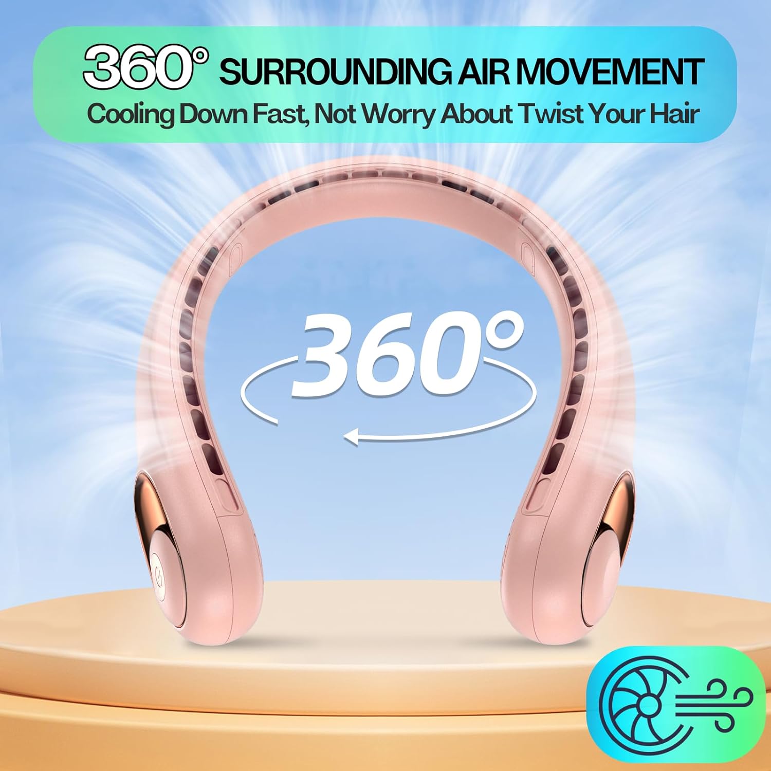 KIDEE Portable Neck Fan, Neck Fans Rechargeable for Women Men, 4000mAh Personal Bladeless Fan, Upgraded Cooling Air Volume, Ultra Quiet Wearable Fan