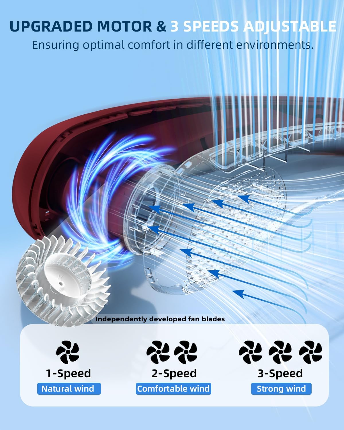 ❥【UPGRADE AIR VOLUME - INCREASE 70%】 Upgrade neck fan use innovative turbo fan blades and wind hole design, increase 70% air volume, make you cool down quickly in 3 seconds.