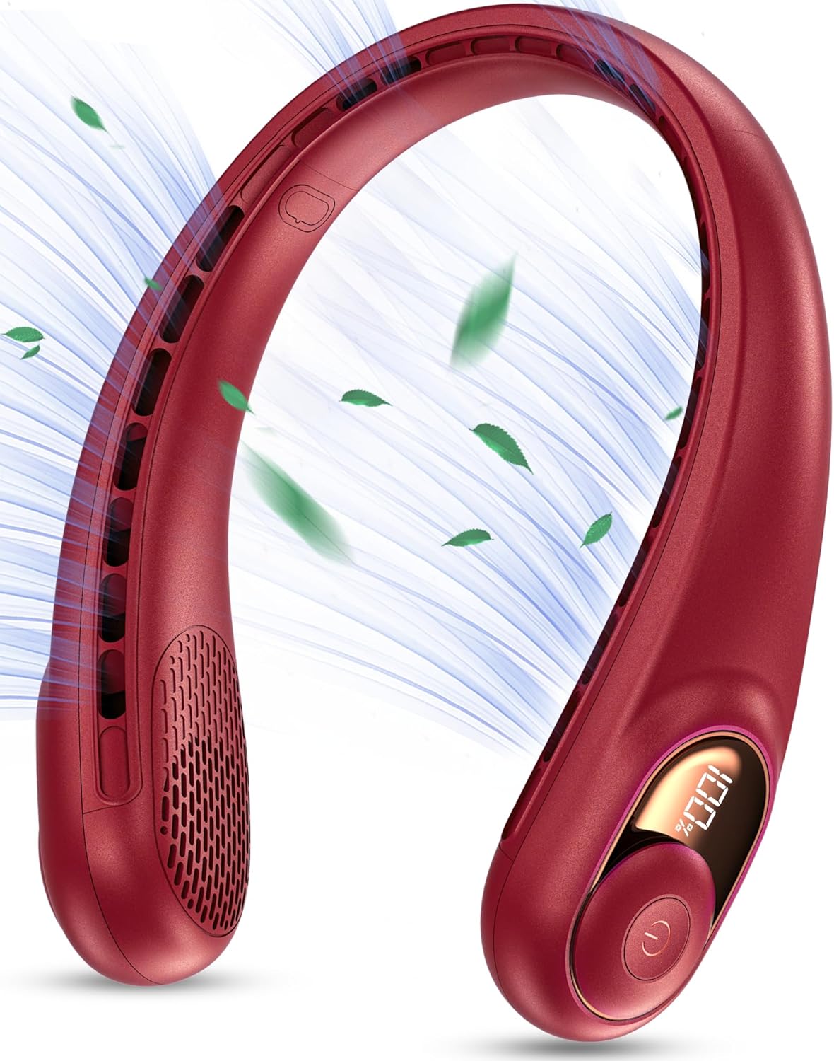 KIDEE Portable Neck Fan, Personal Bladeless Neck Fans 4000mAh, Upgrade 360° Airflow, 3 Speeds, USB Wearable Hands Free Fan Rechargeable, Battery Operated Cooling Fan for Indoor Outdoor Travel