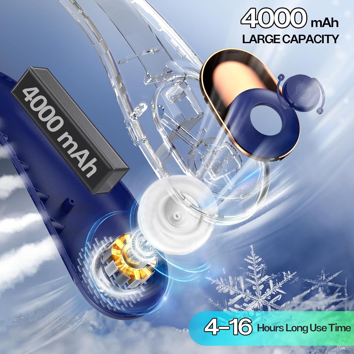 KIDEE Portable Neck Fan, Personal Bladeless Rechargeable, Upgraded 4000mAh Battery & 360° Surrounding Air Outlet, Increase Air Volume, Ultra Quiet, Long Use Time Wearable Fan for Home Travel