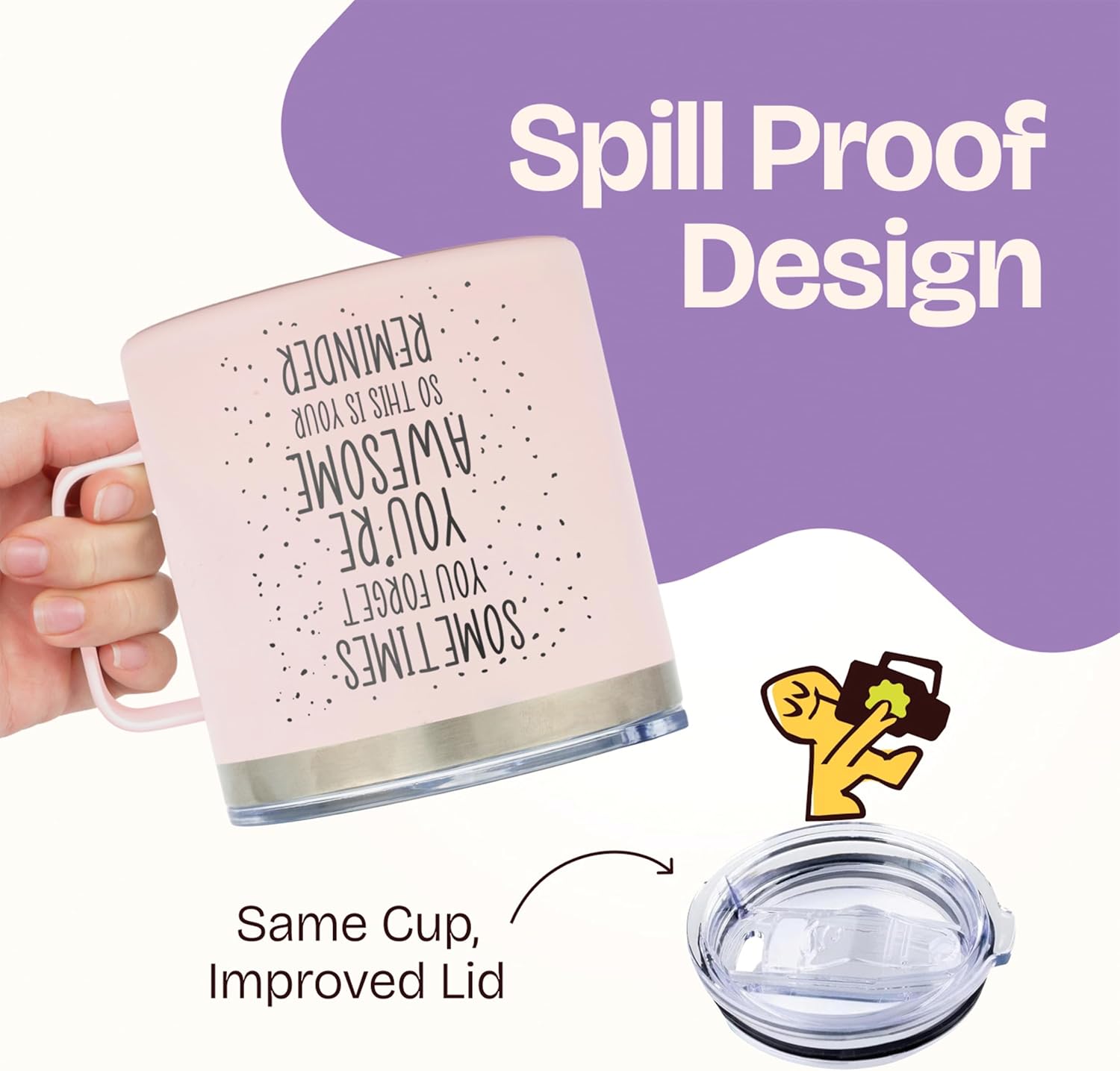 EZ SLIDE LID - This last minute gifts for women pink coffee cup is featuring leak-resistant EZ Slide lid technology and BPA-free composition. Embrace hassle-free cleaning with its dishwasher-safe attribute, and enjoy the ergonomic design of our Sometimes You Forget You're Awesome Tumbler With Handle that enhances your overall drinking experience.