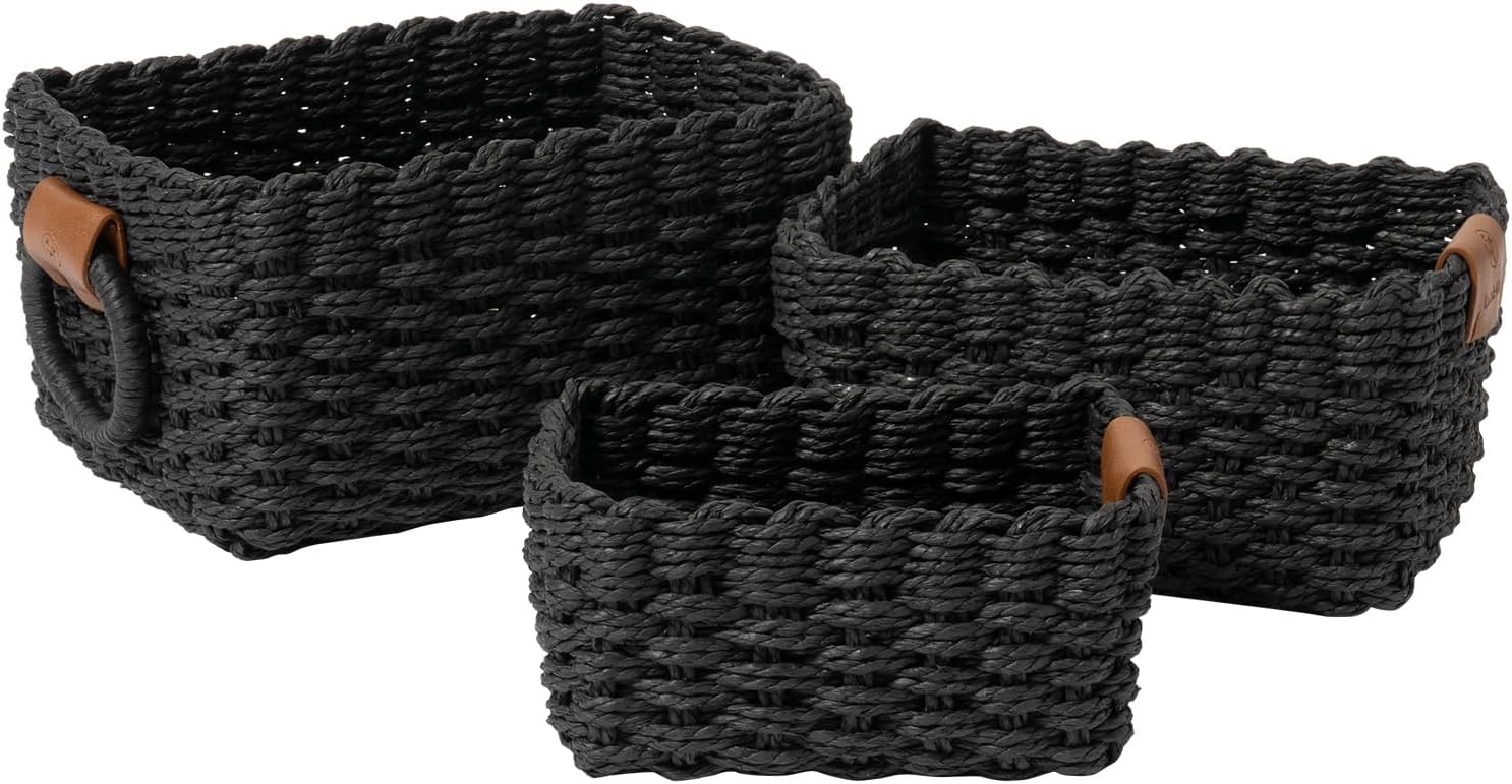 DYNAMIC STORAGE SOLUTIONS FOR EVERY SPACE - With three convenient sizes, this set provides the flexibility to creatively organize a wide range of storage needs. Whether it's sprucing up your nightstand, streamlining bathroom shelving, or clearing clutter from living room surfaces, these baskets seamlessly adapt to various spaces within your home, reflecting a trendy and practical American lifestyle.