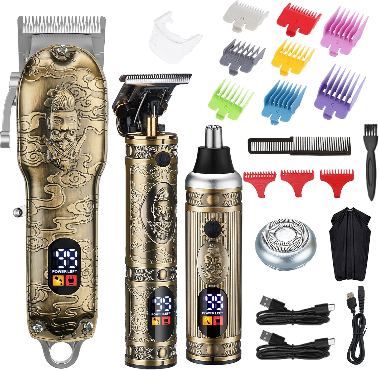 Lanumi Hair Clippers for Men Cordless Hair Trimmer Beard Trimmer/Nose Trimmer Professional T-Blade Trimmer USB Rechargeable Hair Cutting Grooming Kit Barber Clippers Set LED Display
