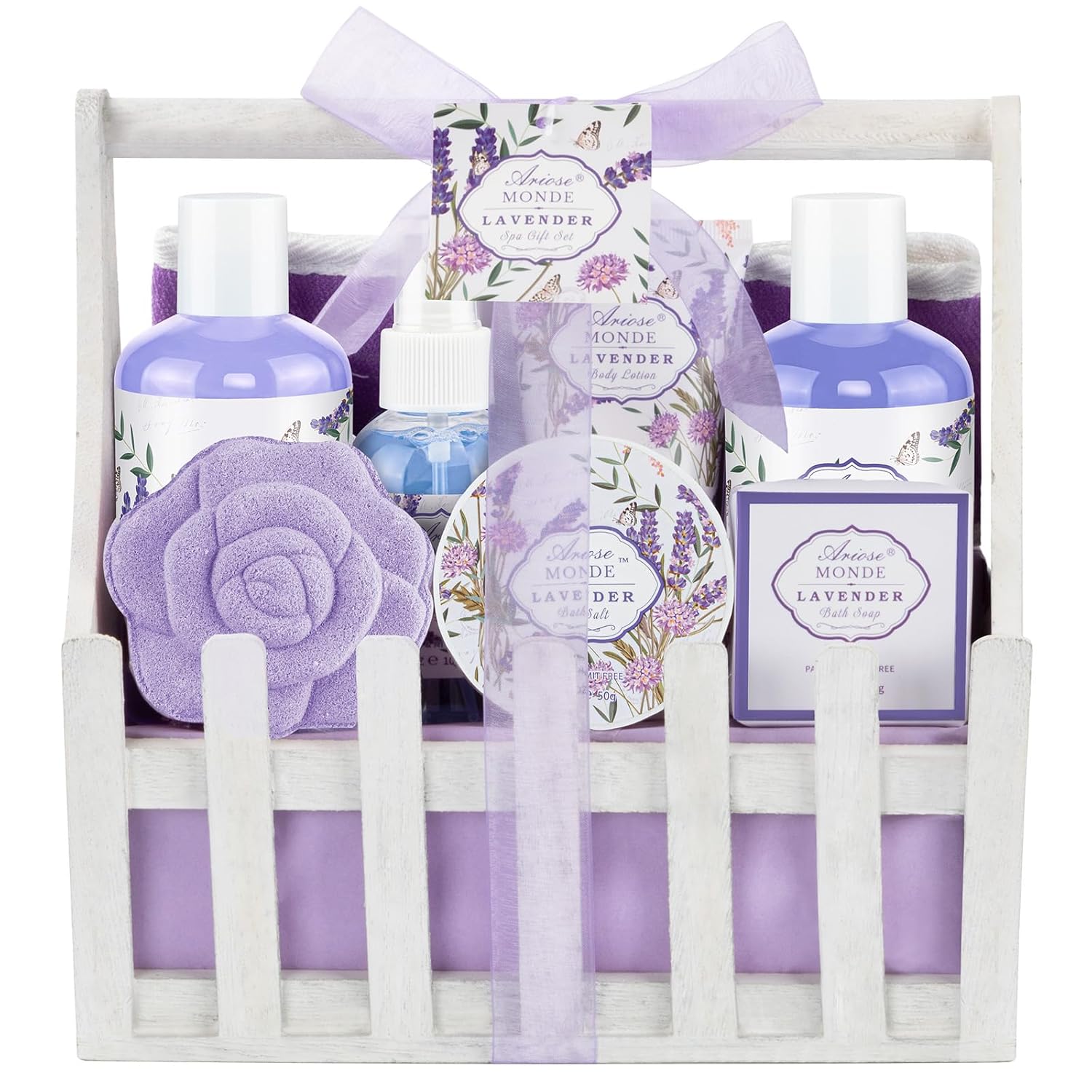 Lavender & Jasmine Scented Spa Gift Set for Women, Includes Body Lotion, Shower Gel, Salts, Bubble Bath, Body Mist, Soap, Bath Bombs