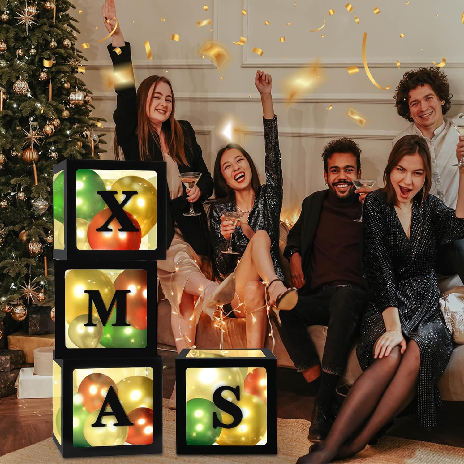 Ledido Transparent Balloon Boxes, Clear Balloon Boxes with 5 Pcs String Lights and 78 Letters for Baby Shower Gender Reveal Grad Birthday Party Anniversary Bridal Wedding Decor - 5 Black Boxes
