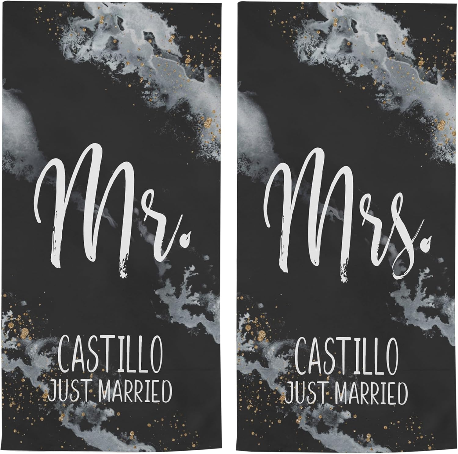 UNIQUELY PERSONALIZED: Choose gray, pink or black as well as Mr. & Mrs., Mr. & Mr. or Mrs. & Mrs. Sold as a set of 2. Personalize with any 2-line message up to 20 characters each.