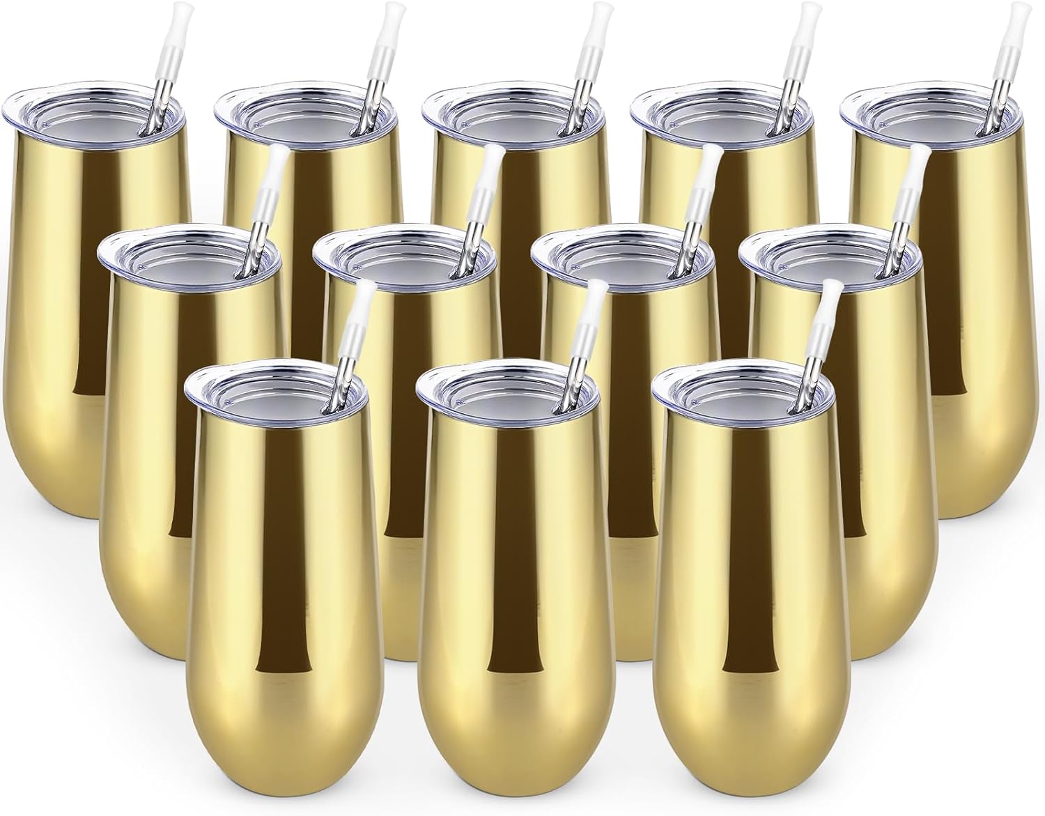 Lifecapido 12 Pack Insulated Champagne Tumblers, 12oz Stemless Flutes, Stainless Steel Tumblers, Insulated Glass for Birthday Party Wedding Christmas, Gold Plating