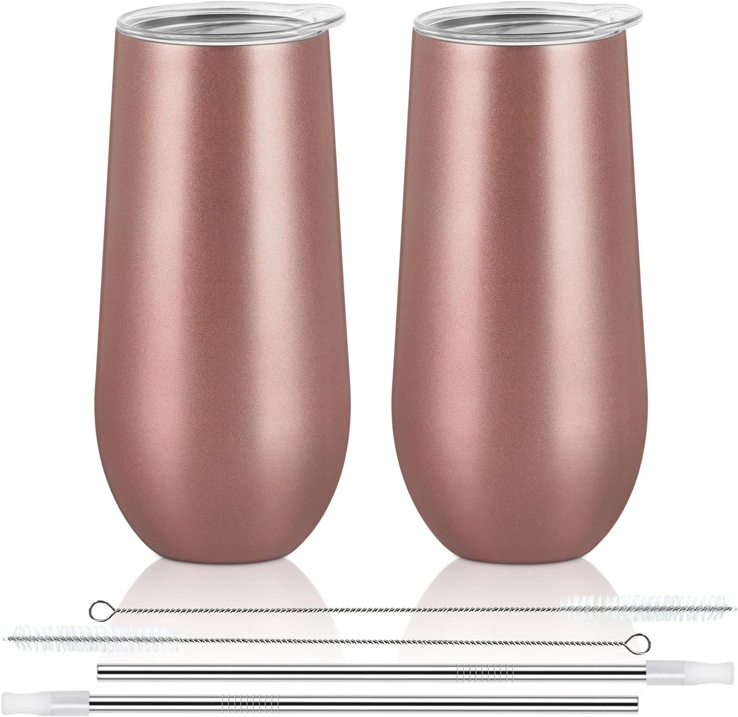 Lifecapido 2 Pack Insulated Tumblers, 12oz Stemless Champagne Flutes, Stainless Steel Tumblers, Insulated Glass for Birthday Party, Wedding, Christmas (Rose Gold)