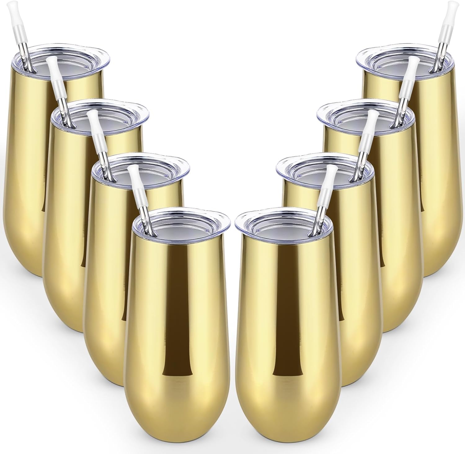 Lifecapido 8 Pack Insulated Stemless Tumblers, 12oz Stainless Steel Flute Tumblers, Gold Plating for Birthday Party Wedding Christmas