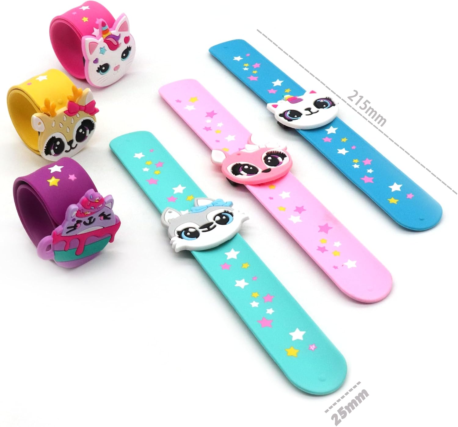 【6 Slap Bracelets + 6 Charms】 Each pack includes 6 soft silicone bracelets and 6 detachable themed charms (Cat) for endless DIY fun – ideal for party loot bags or group activities!