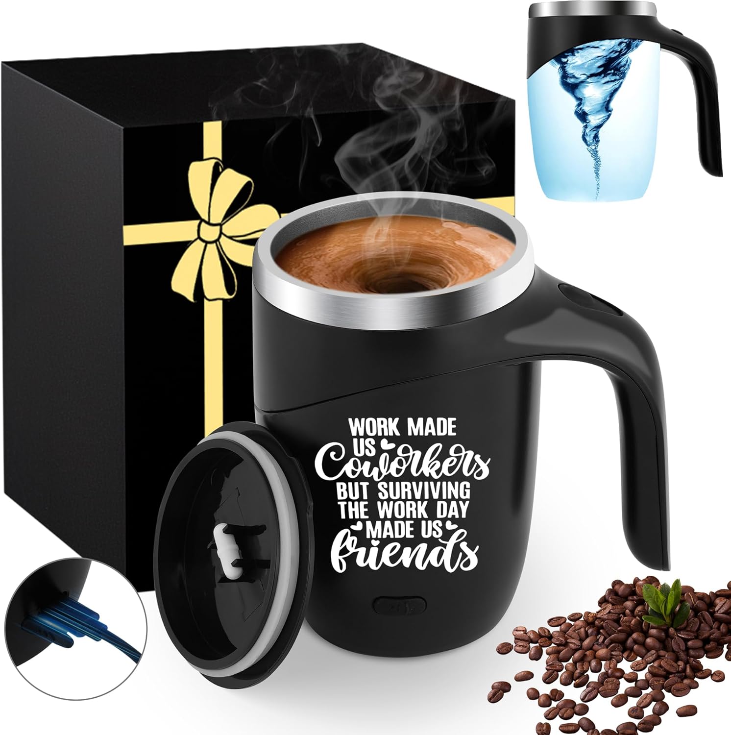 Magnetic Stirring Coffee Mug Stainless Insulated Cup Men White Elephant Adults Christmas Funny Unique Office Party Teacher Co Worker Colleague Farewell Male Boss Coworker Work Leaving Goodbye Gifts