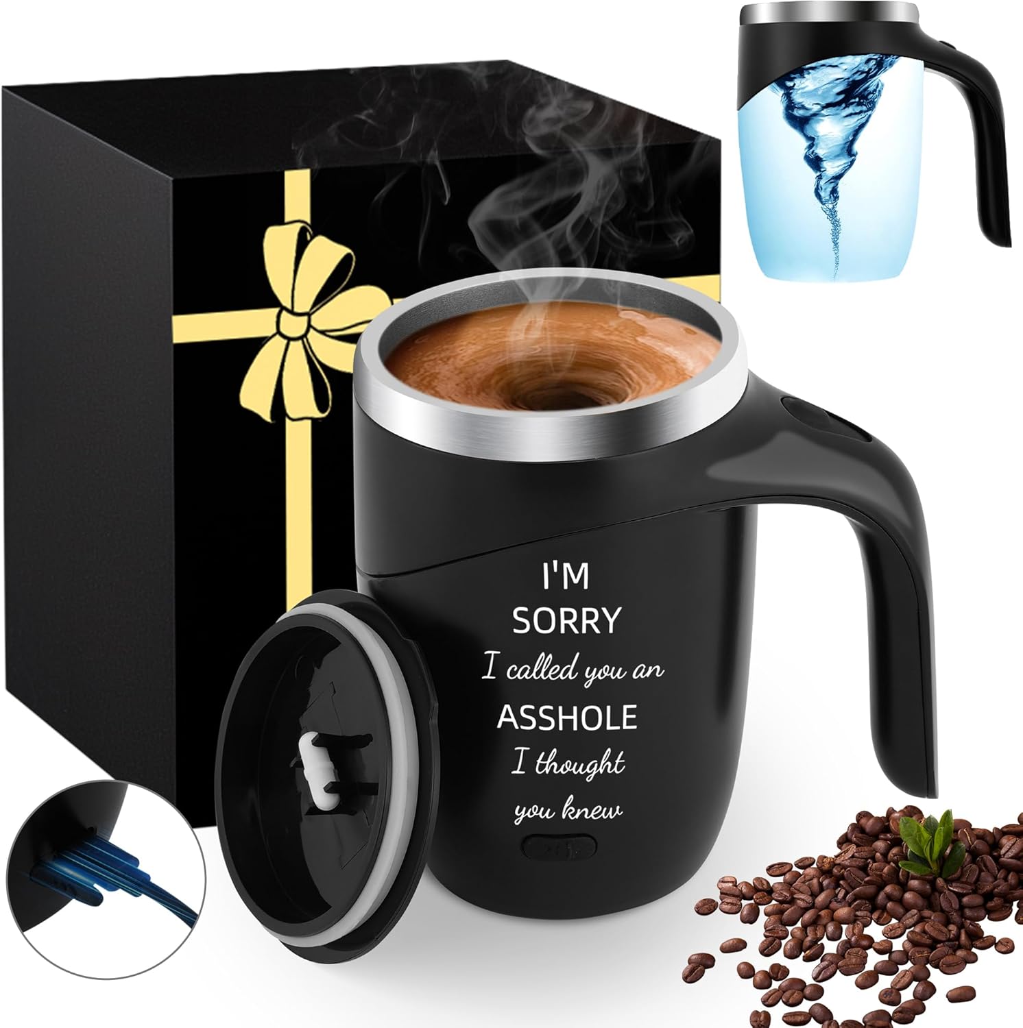 Magnetic Stirring Coffee Mug Stainless Insulated Cup White Elephant Adults 30 Christmas Gag Fun Weird Novelty Useful Unique Men Prank Dirty Secret Santa Unisex Holiday Best Cool Nice Exchange Gifts
