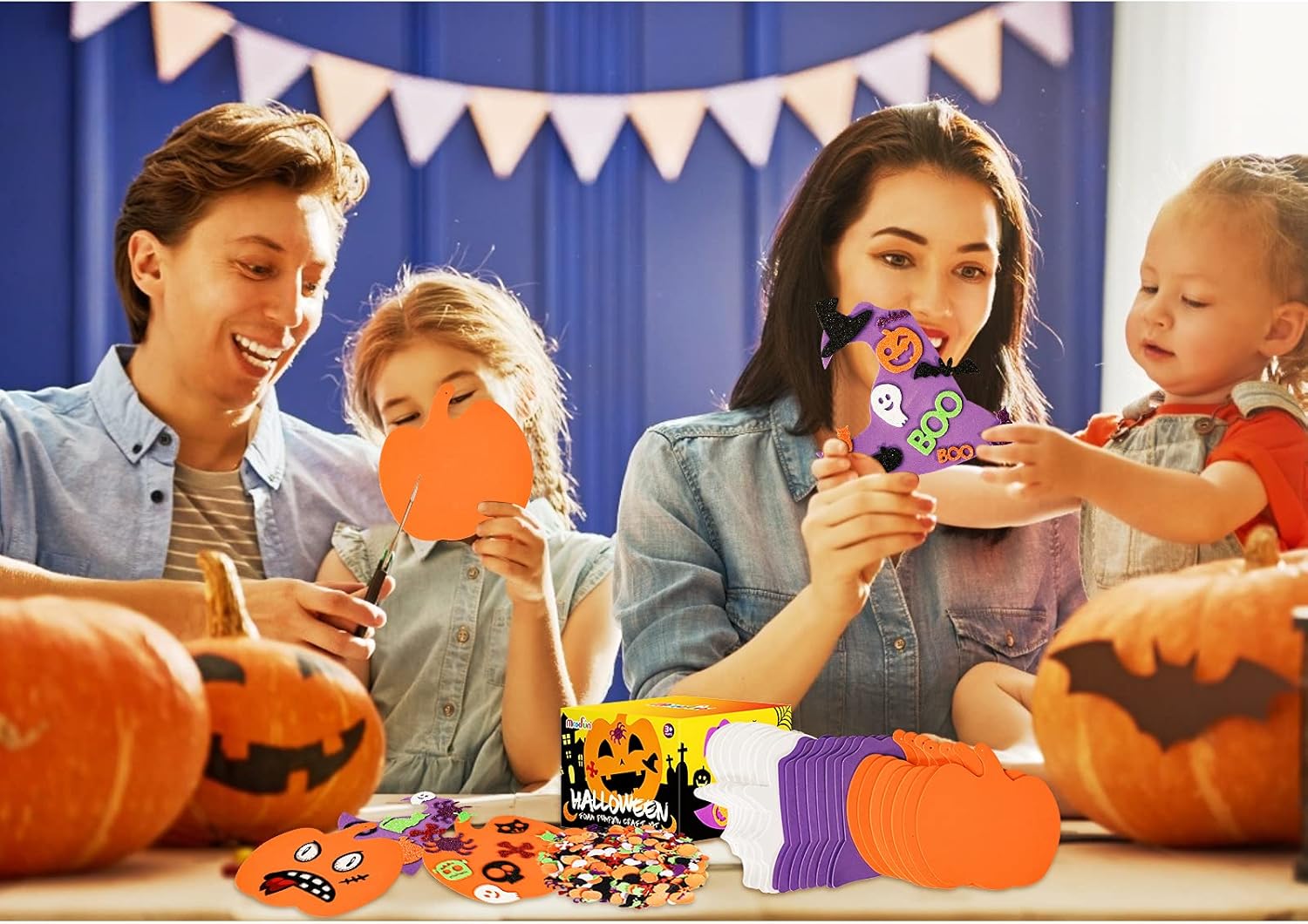 Max Fun 302PCS Halloween Crafts for Kids - Foam Pumpkins, Stickers, Ghost & Witch Hat Decorations for Kids Party Favors & Activities