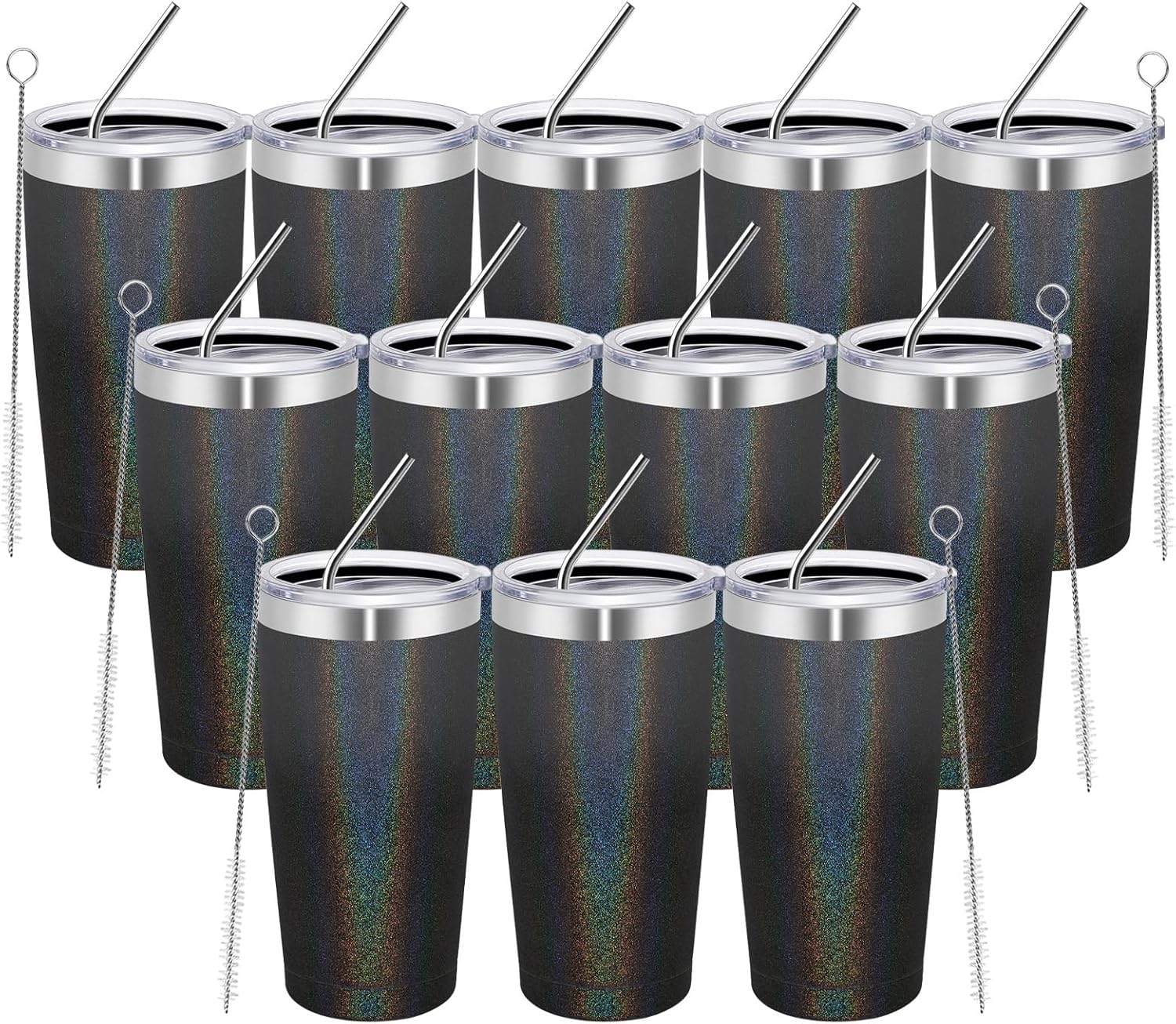 [Package included]12*20 oz glitter tumbler,12*splash proof cover with hole, 12*bent stainless steel straw, 6*straw brush