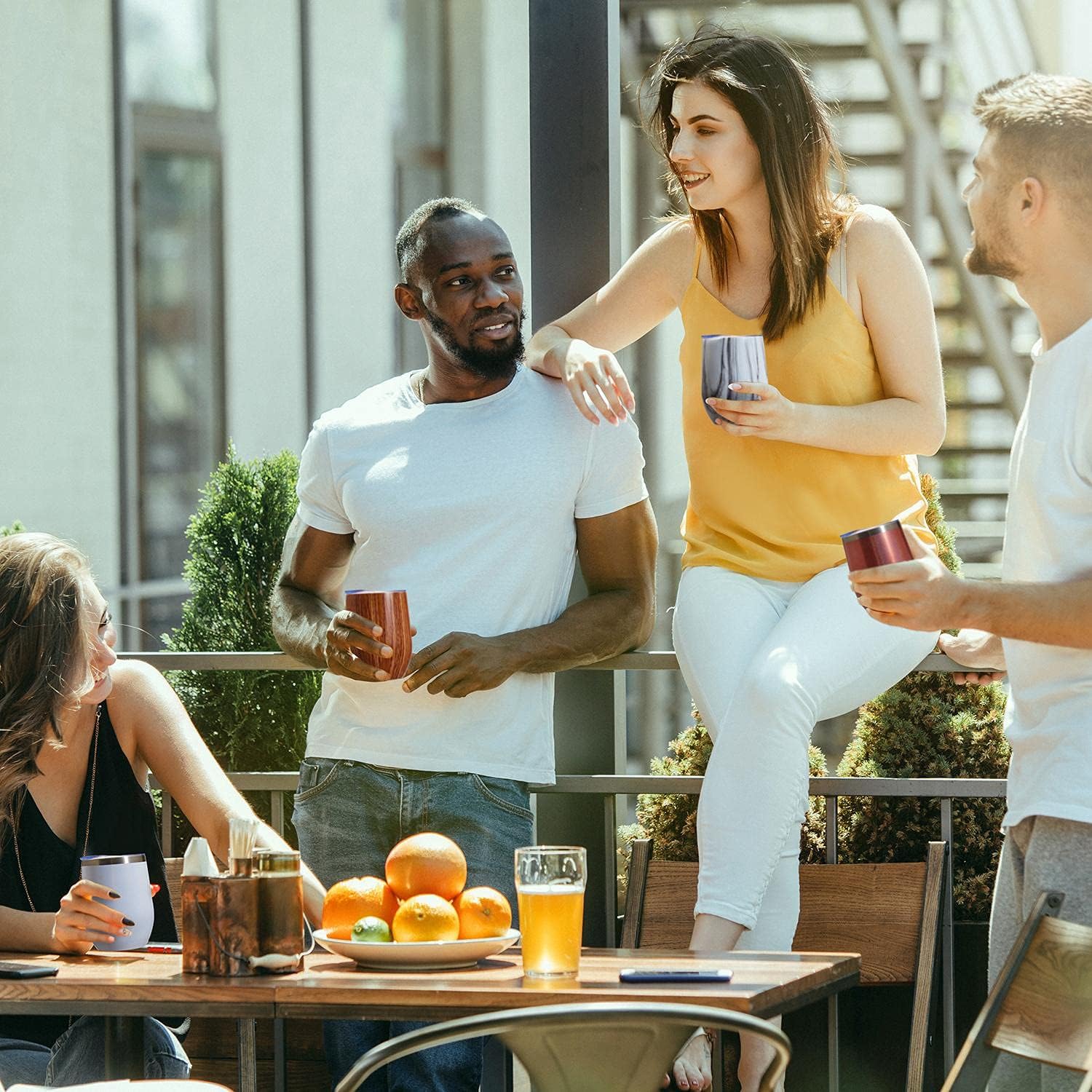 [Advanced Insulation Technology:]Double wall vacuum insulated prefection in a stemless wine tumbler made from lifelong Stainless Steel! Set off on your refreshing picnic, hiking or camping adventures with your water, wine, or cocktail icy-cold for 9 hours or your coffee and tea scalding-hot for over 3 hours
