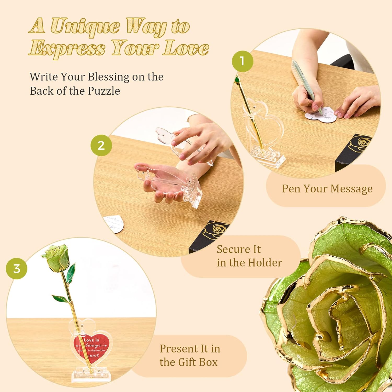 💖【A Message Hidden in the Pieces of Love】 Every rose comes with a heart puzzle—simple in shape, rich in meaning. Write your message on the back, mix the pieces, and let your loved one discover your words as they put it together. It’s more than a gift—it’s a little ritual of love.