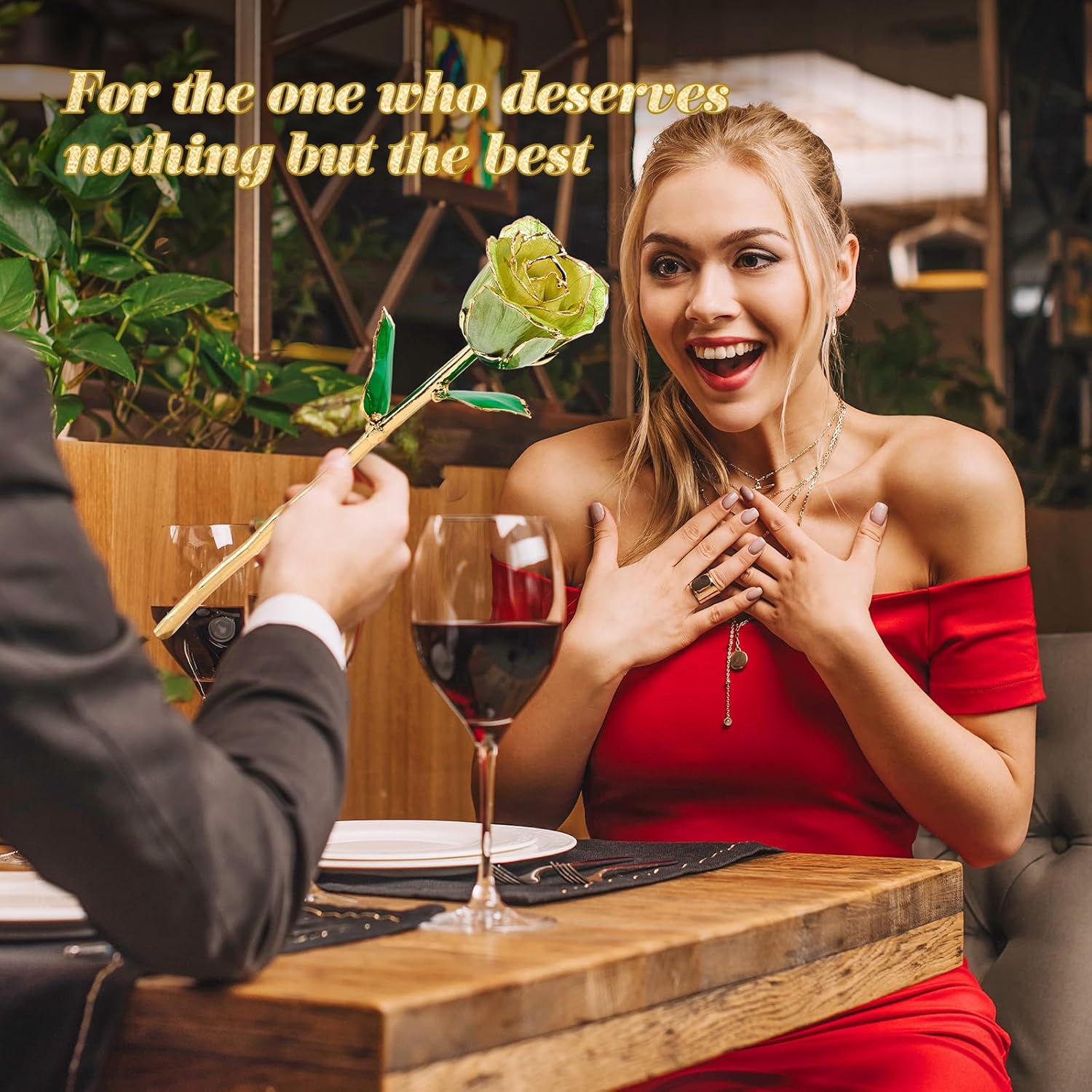 Mikasol Real 24K Gold Dipped Realistic Rose – Timeless Lifelike Bloom with Heart Puzzle Base – Romantic Gradient Green Flower Gift for Her, Wife, Girlfriend, Mom – Birthday, Anniversary, Mother’s Day